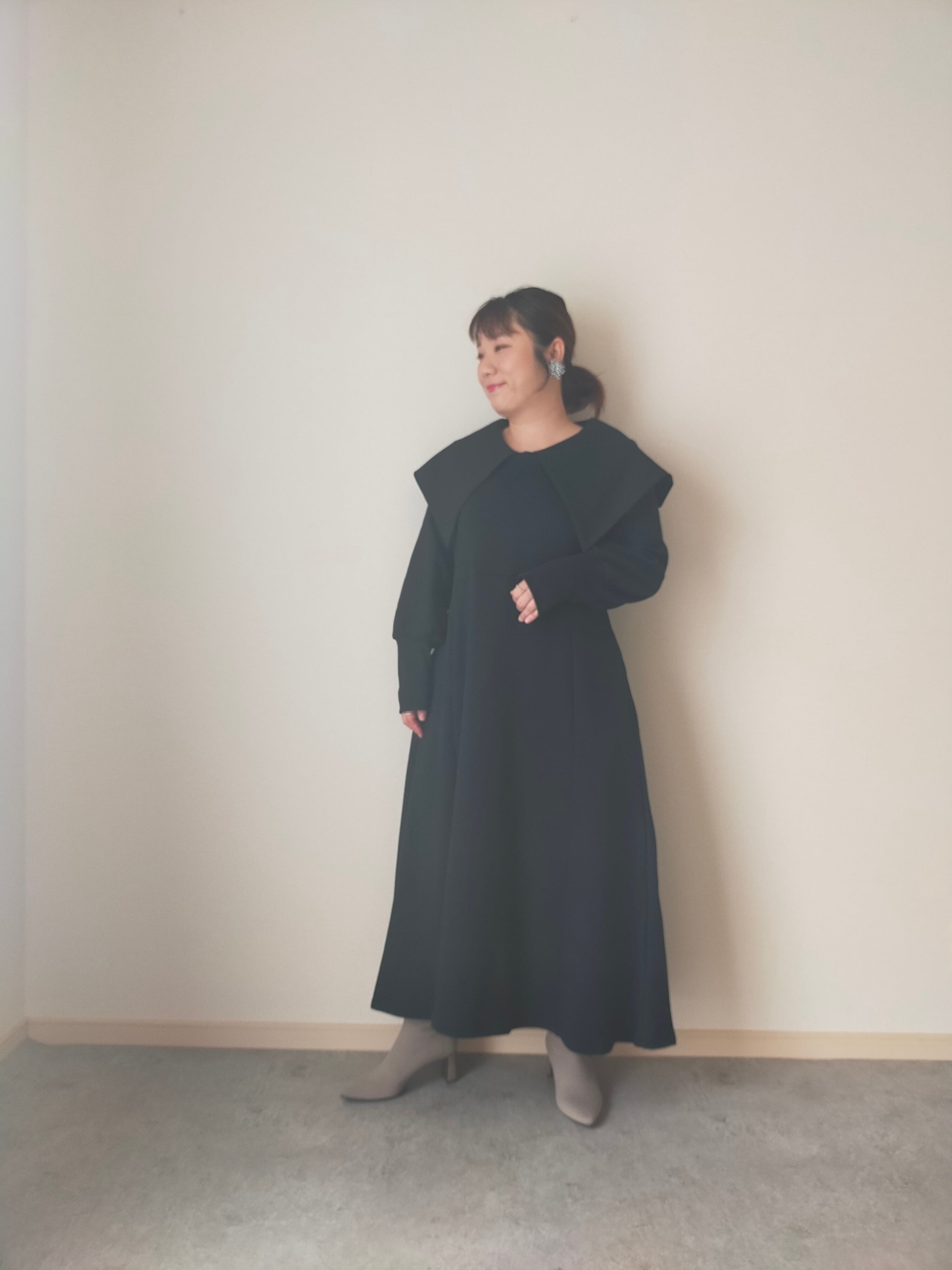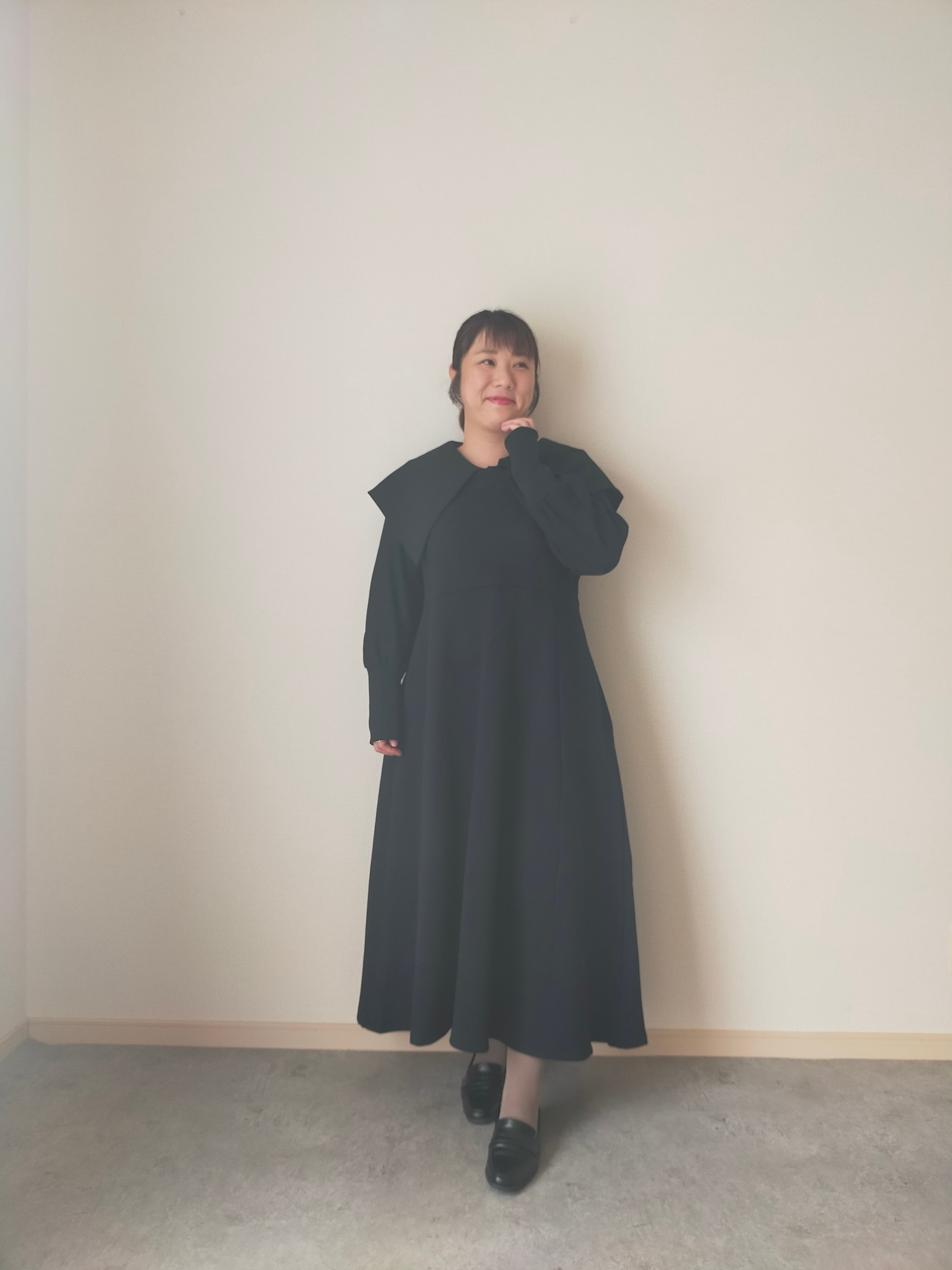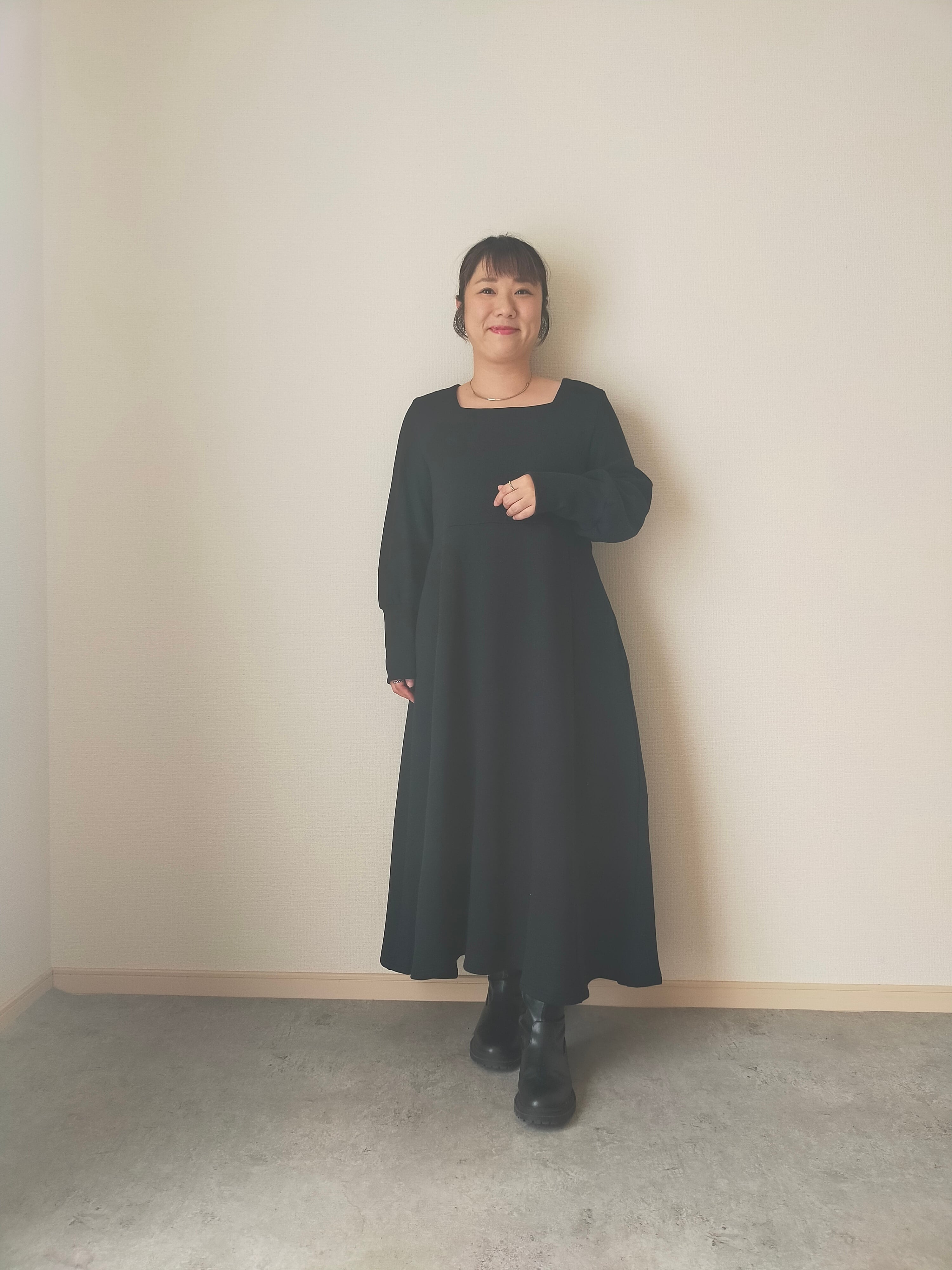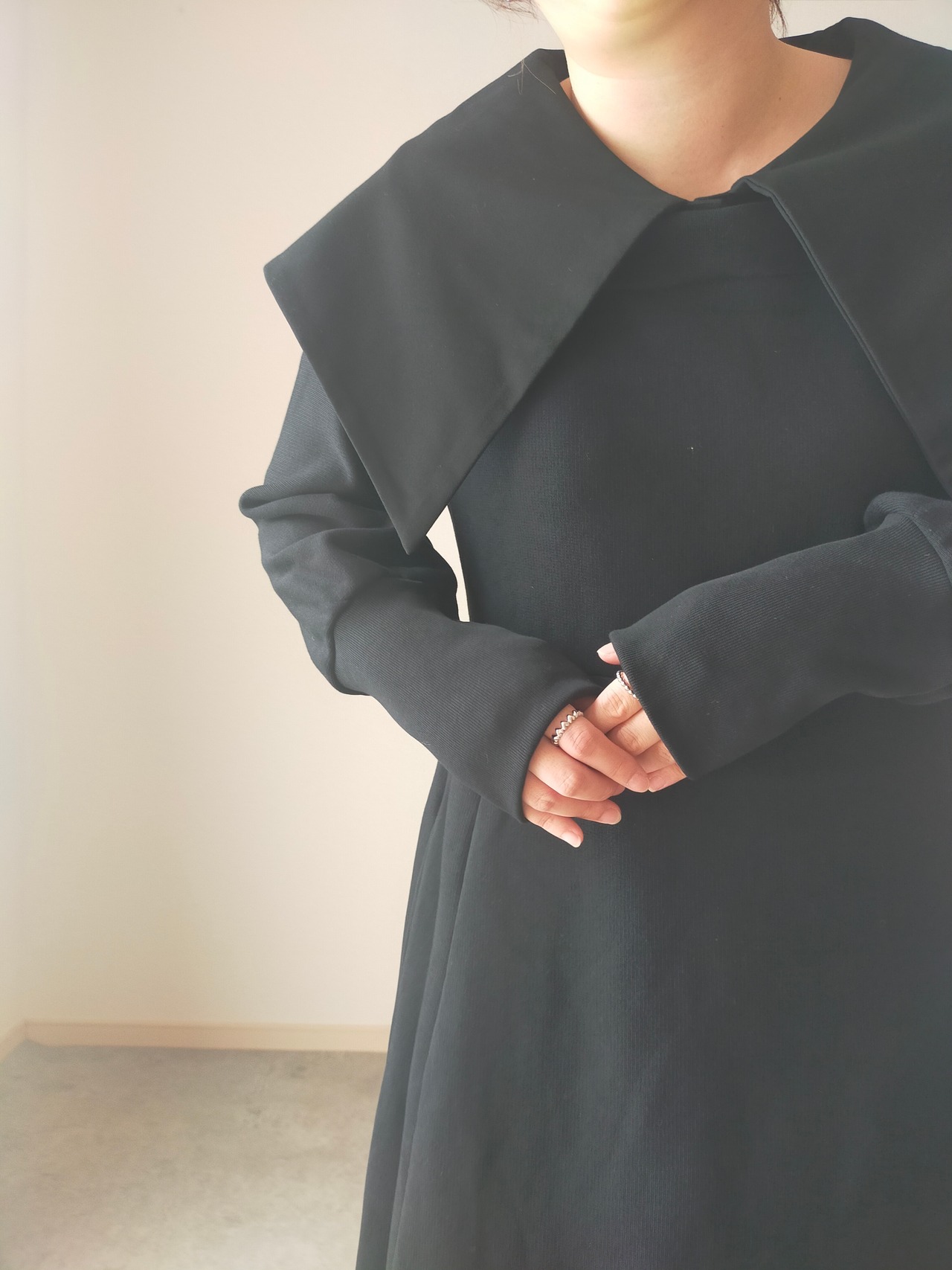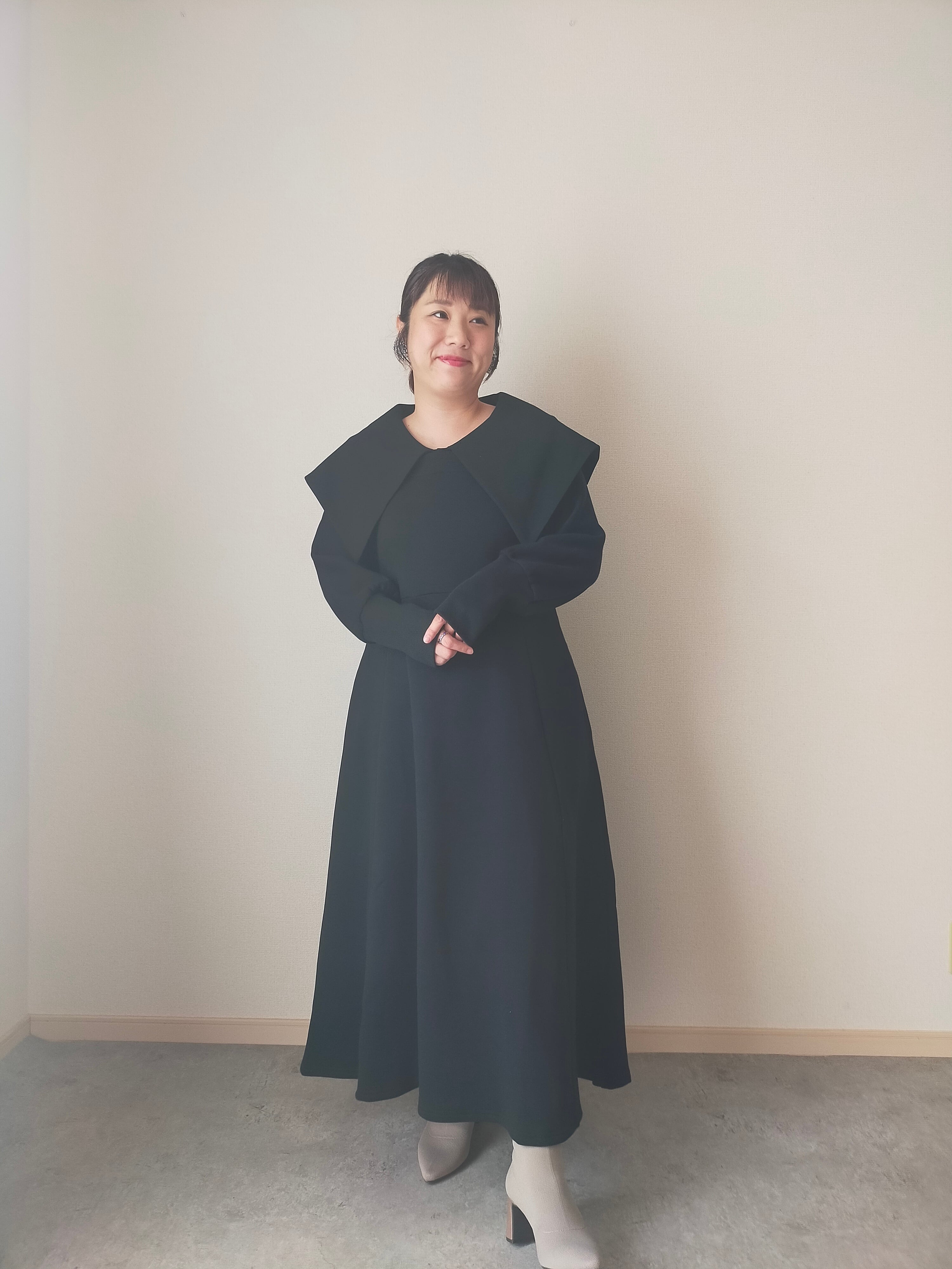 本体が綿のスウェットワンピース、抜け感が出せるスクエアネックとchachapiらしい一癖な大襟をお楽しみください。