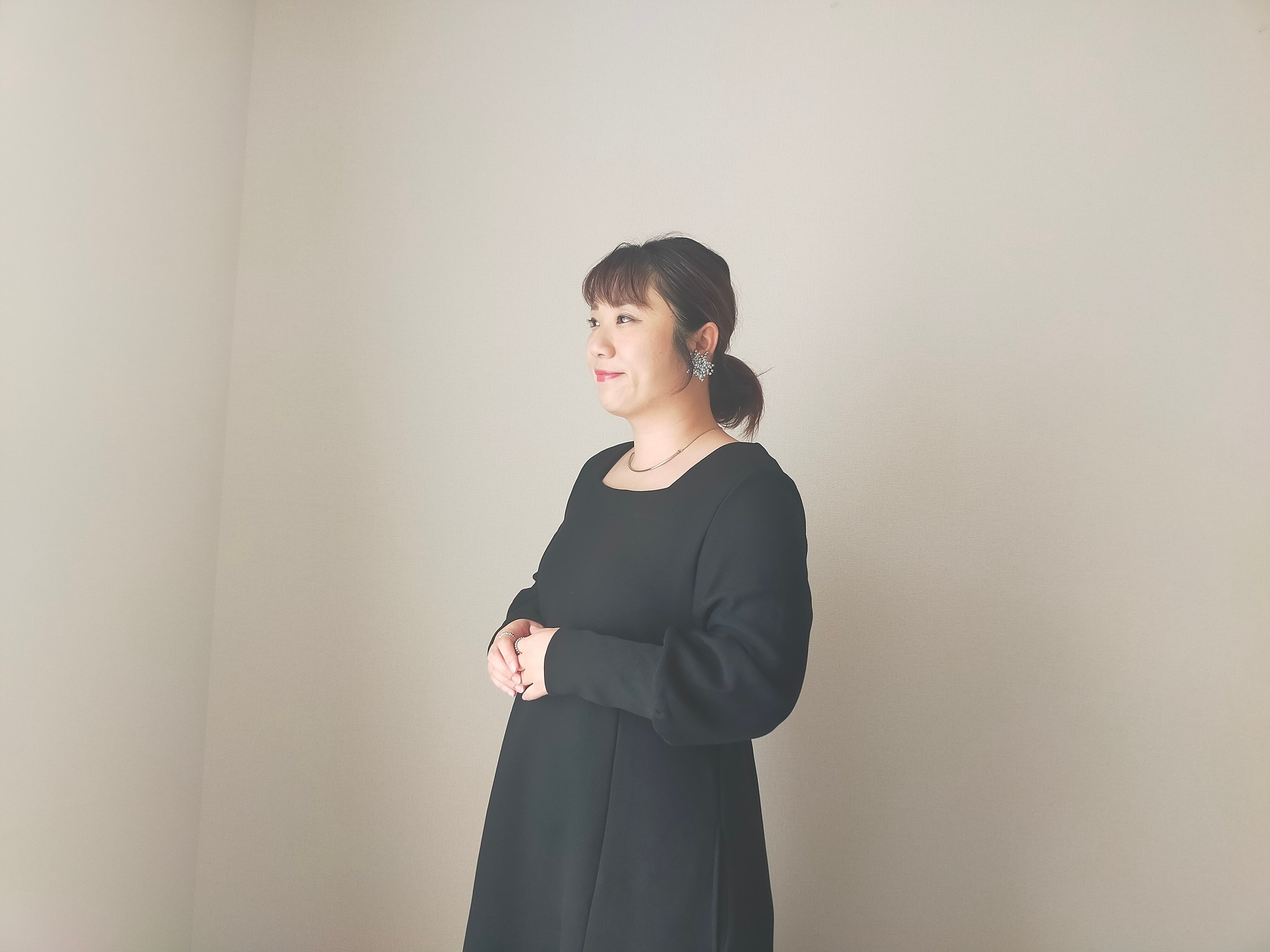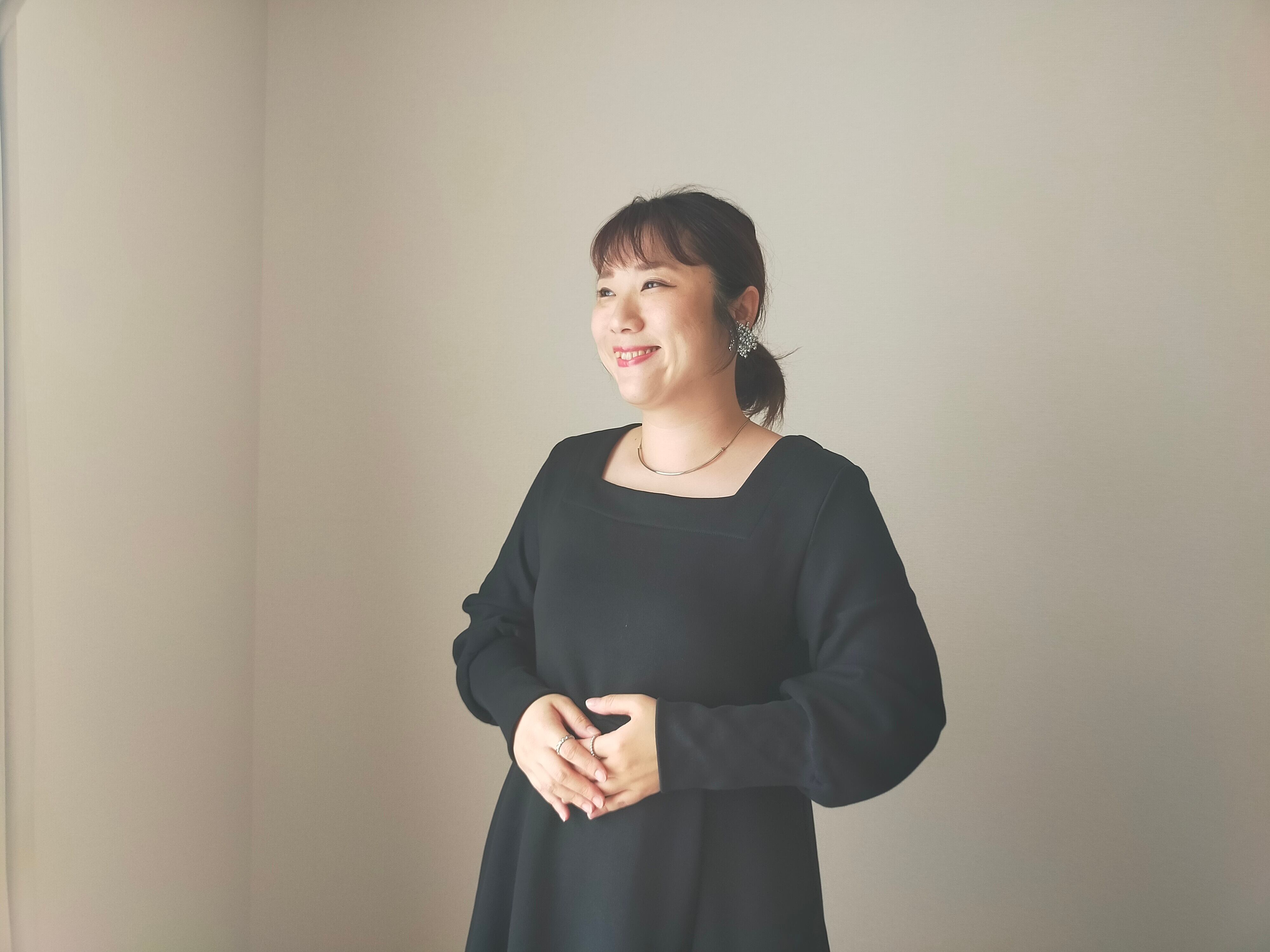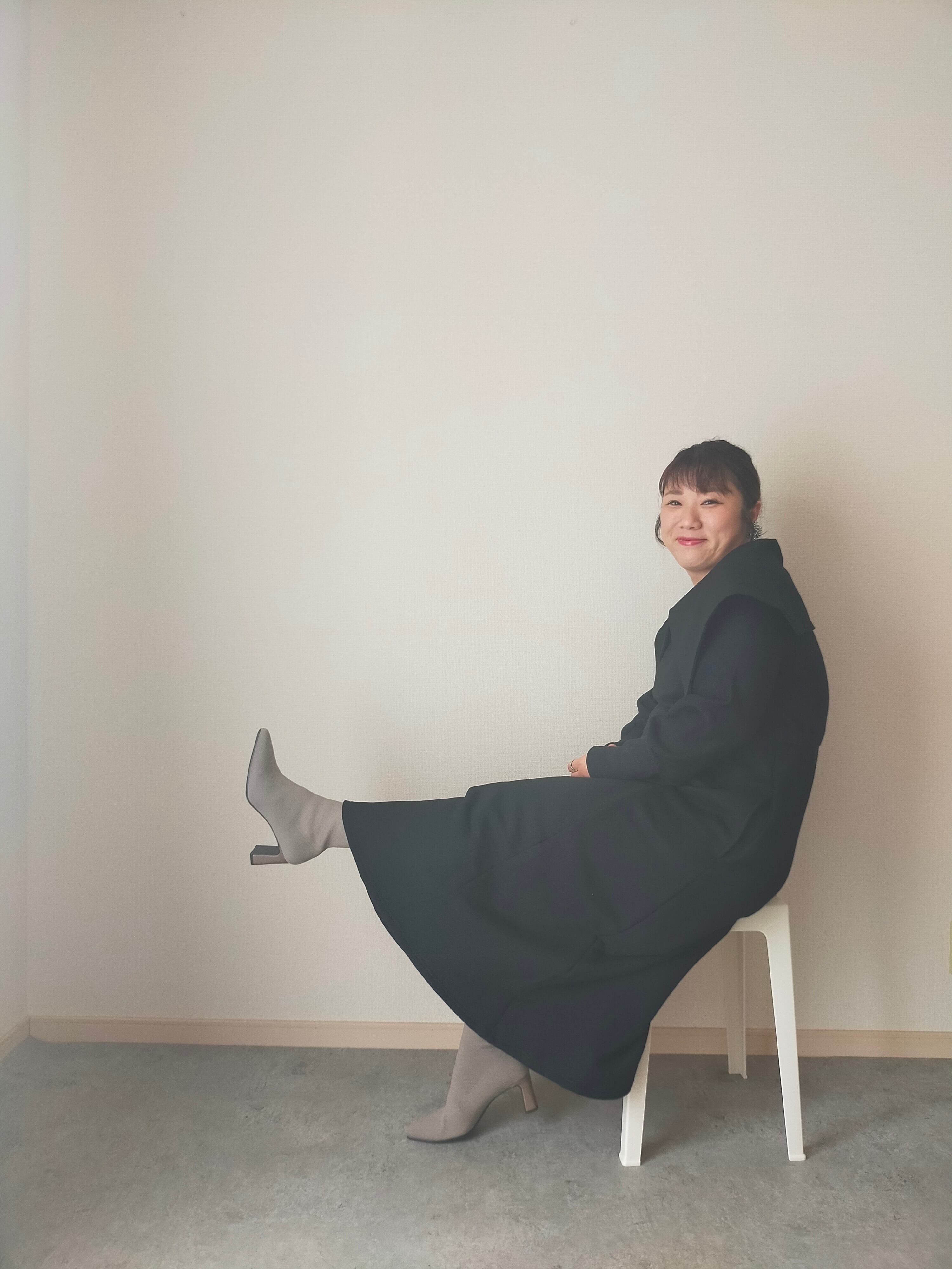 スウェットながら女性らしいシルエットにすることで、日常のリアルクローズに。