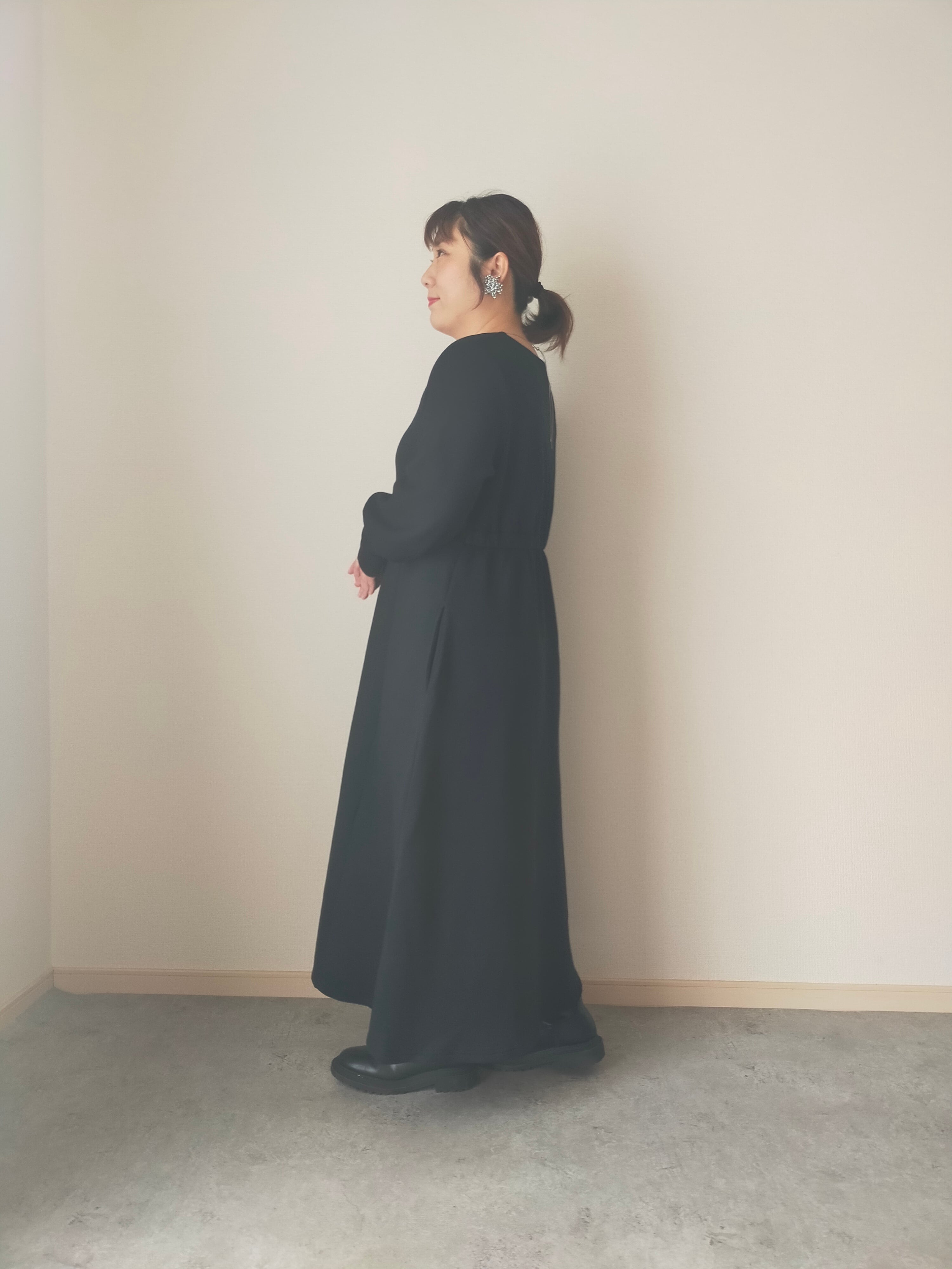 ゆったりですが、ぶかぶかにならないシルエットです。ウエストのゴムやわらかくよく伸びます。