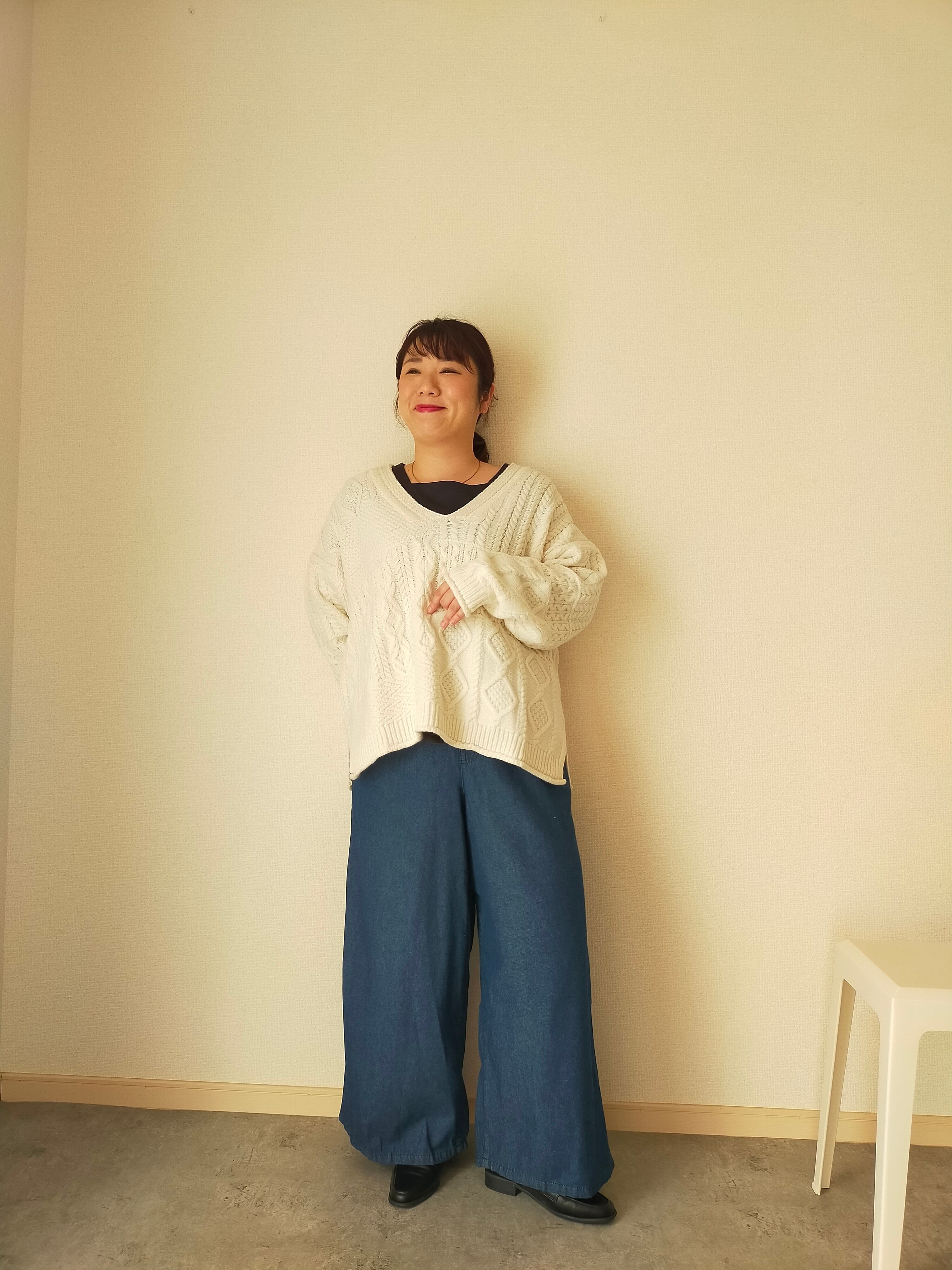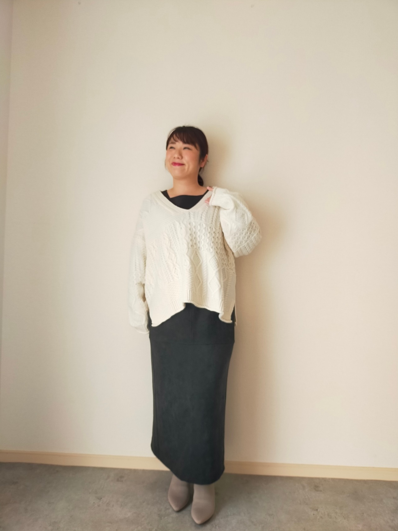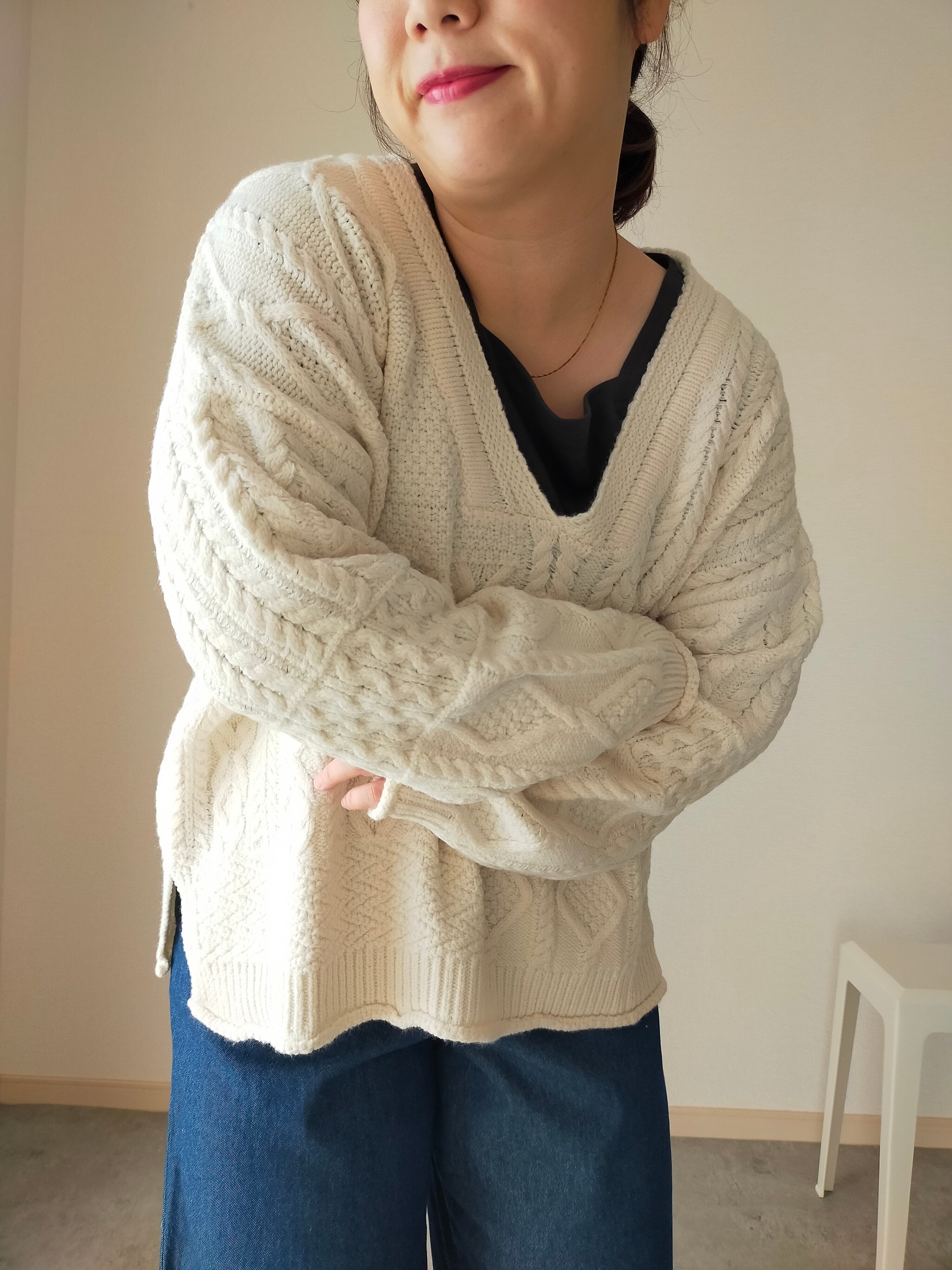 もちもちとした素材感で、たっぷりしたサイジングで、深めのVネック、サイドスリットで抜け感が出せます☺️
