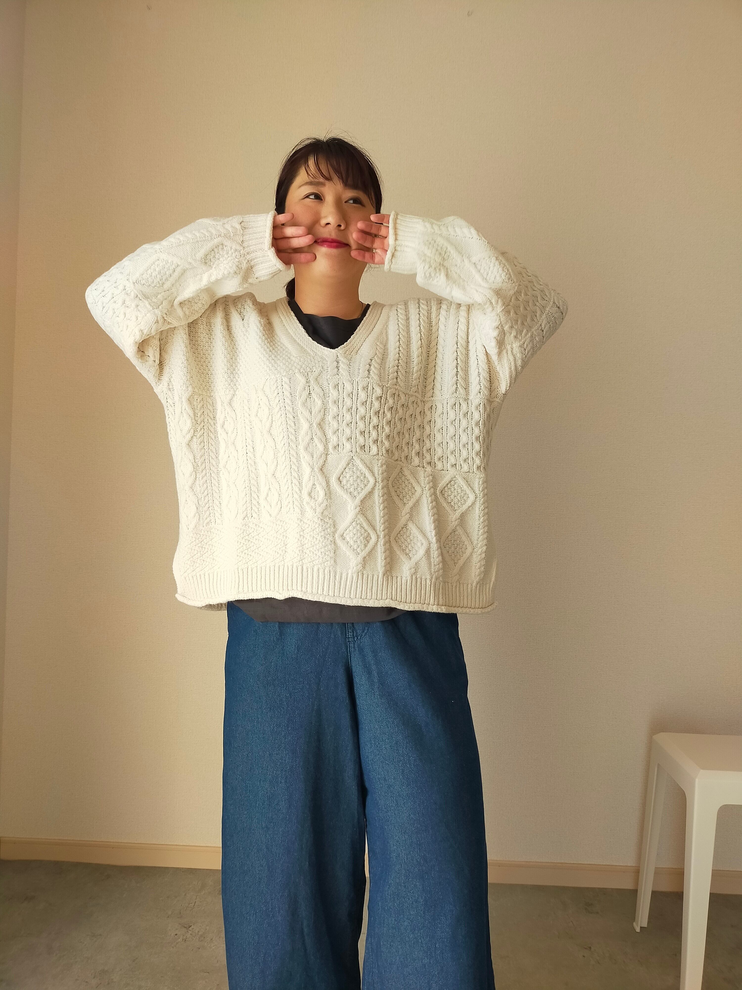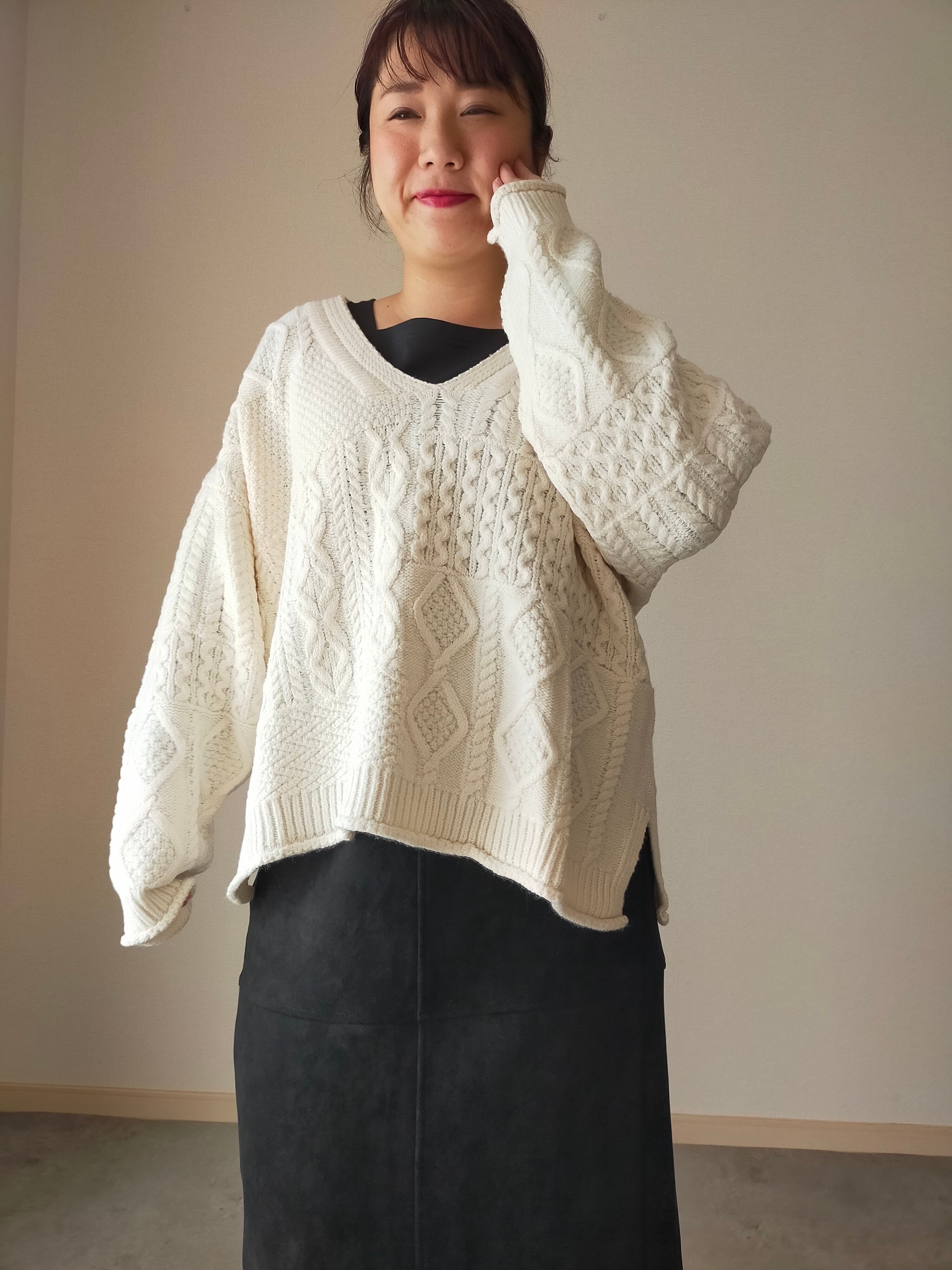 色々な編み方が集結した、シンプルなのに主役なニットです!!