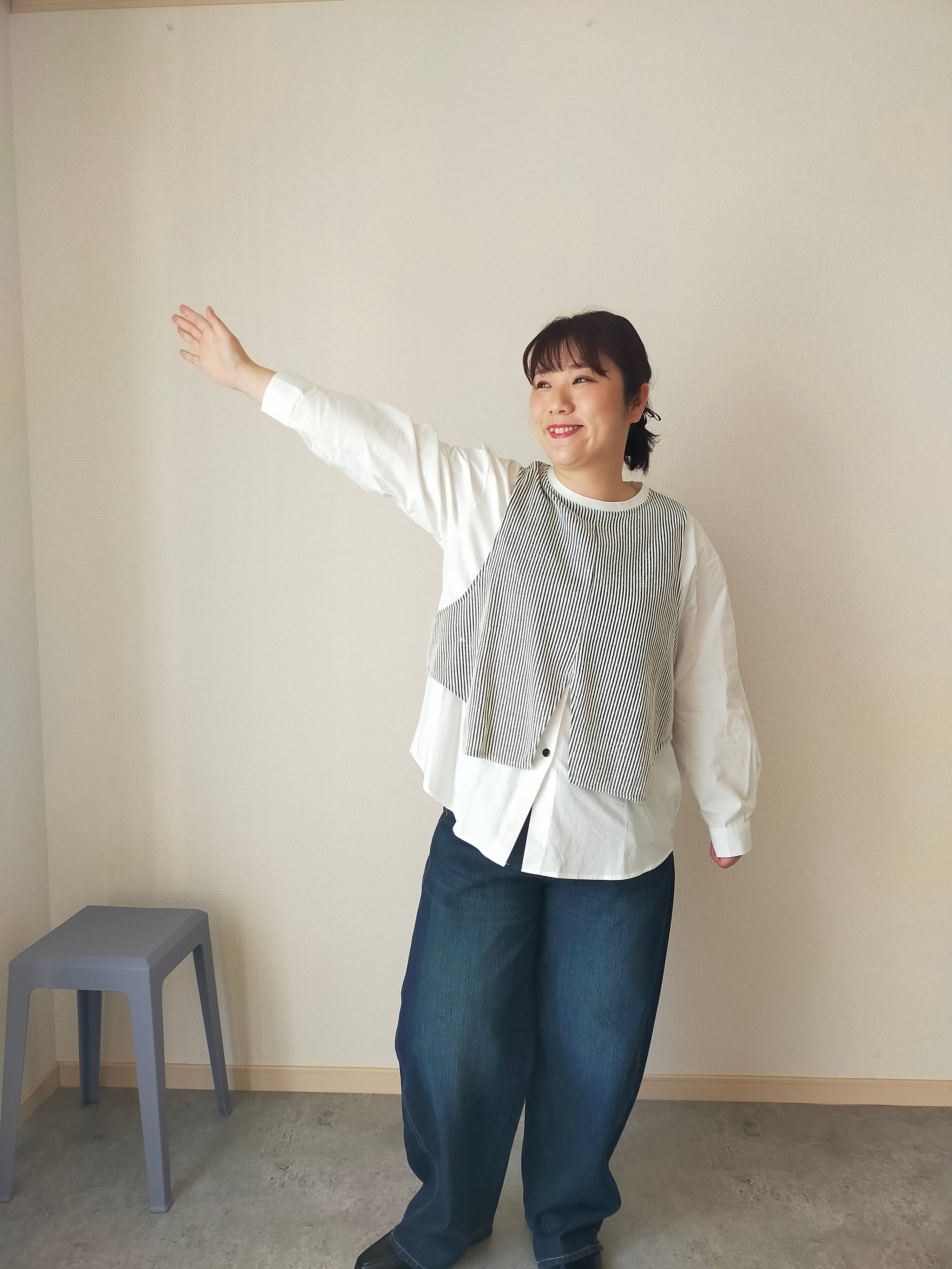 身幅、アームホールともに広く、伸びないシャツですがゆったり着れました。また襟がないデザインなので襟が苦手な方にもオススメです