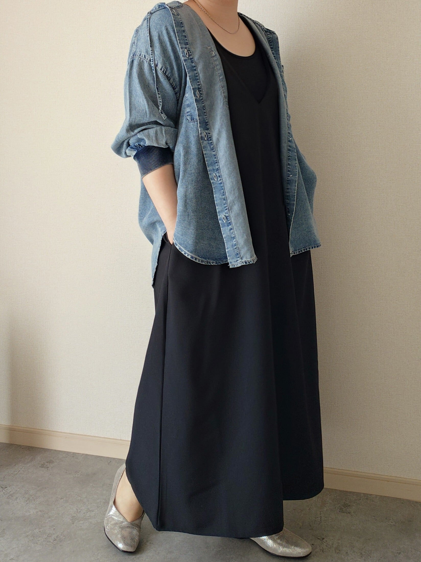 パンツ合わせもワンピース合わせもできる万能な丈です。