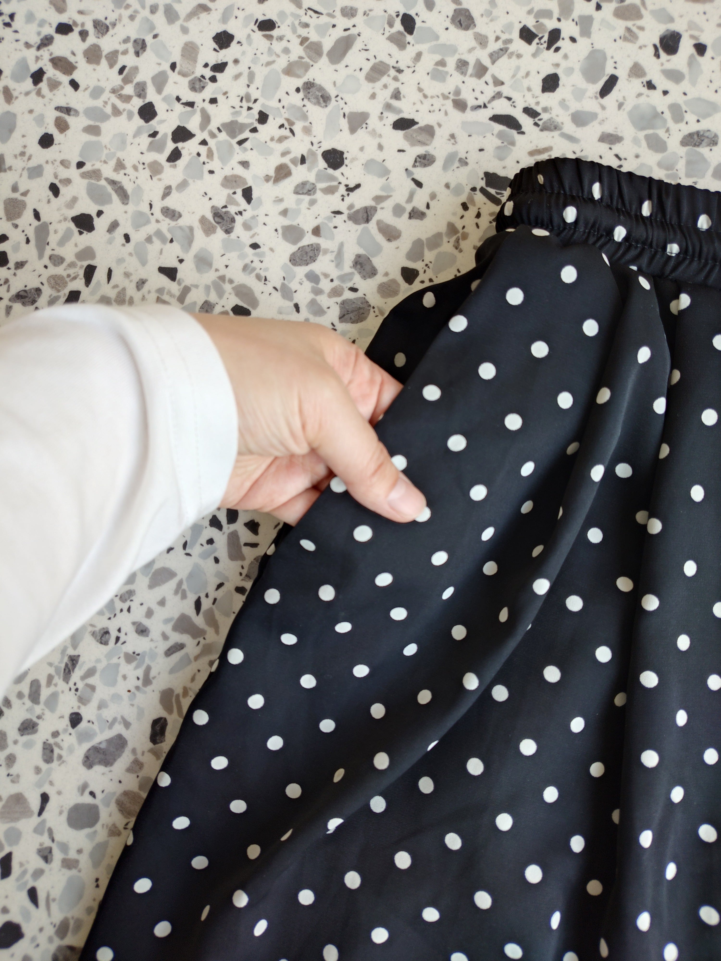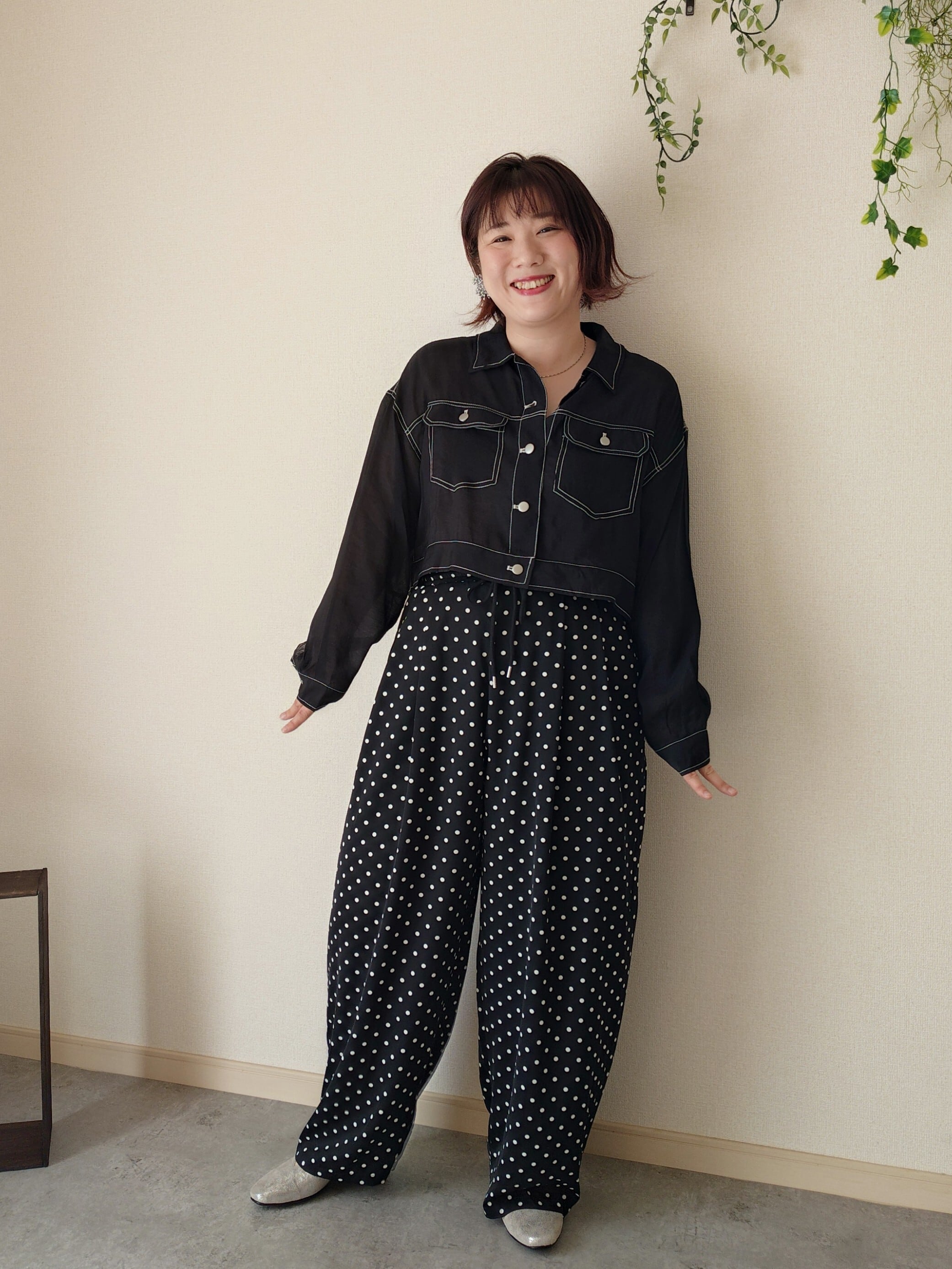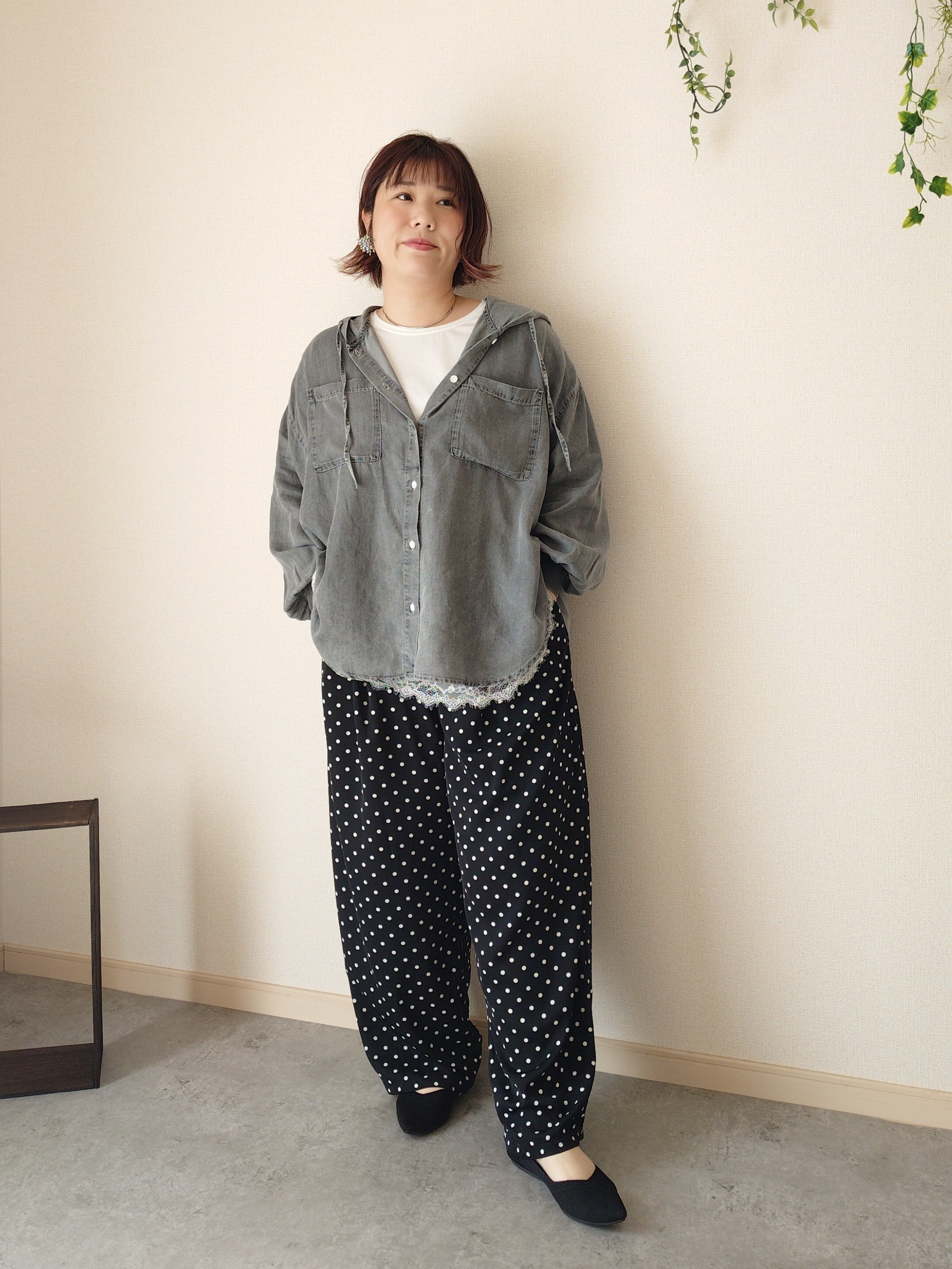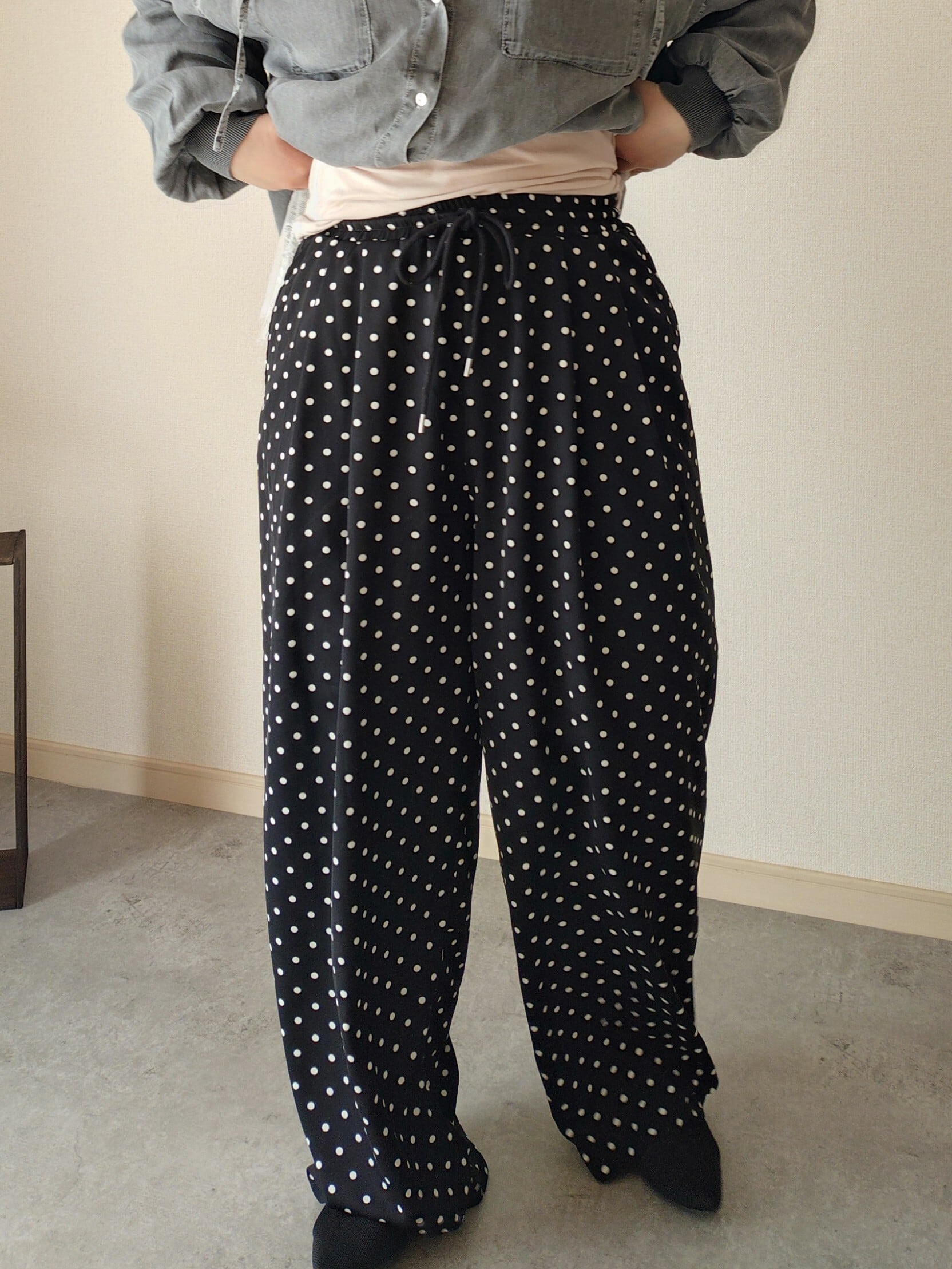 ドット柄が大人カジュアルに合わせやすいです
