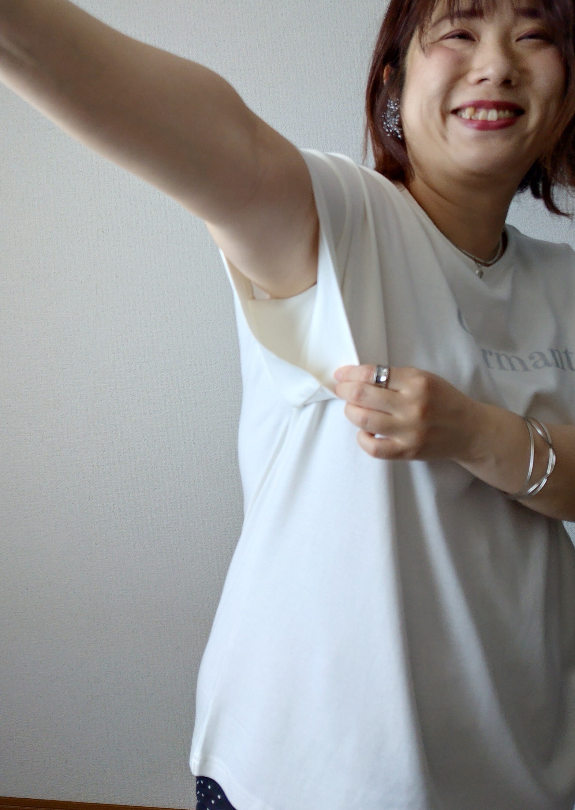 接触冷感素材を使用したクールタッチスムスTシャツ。