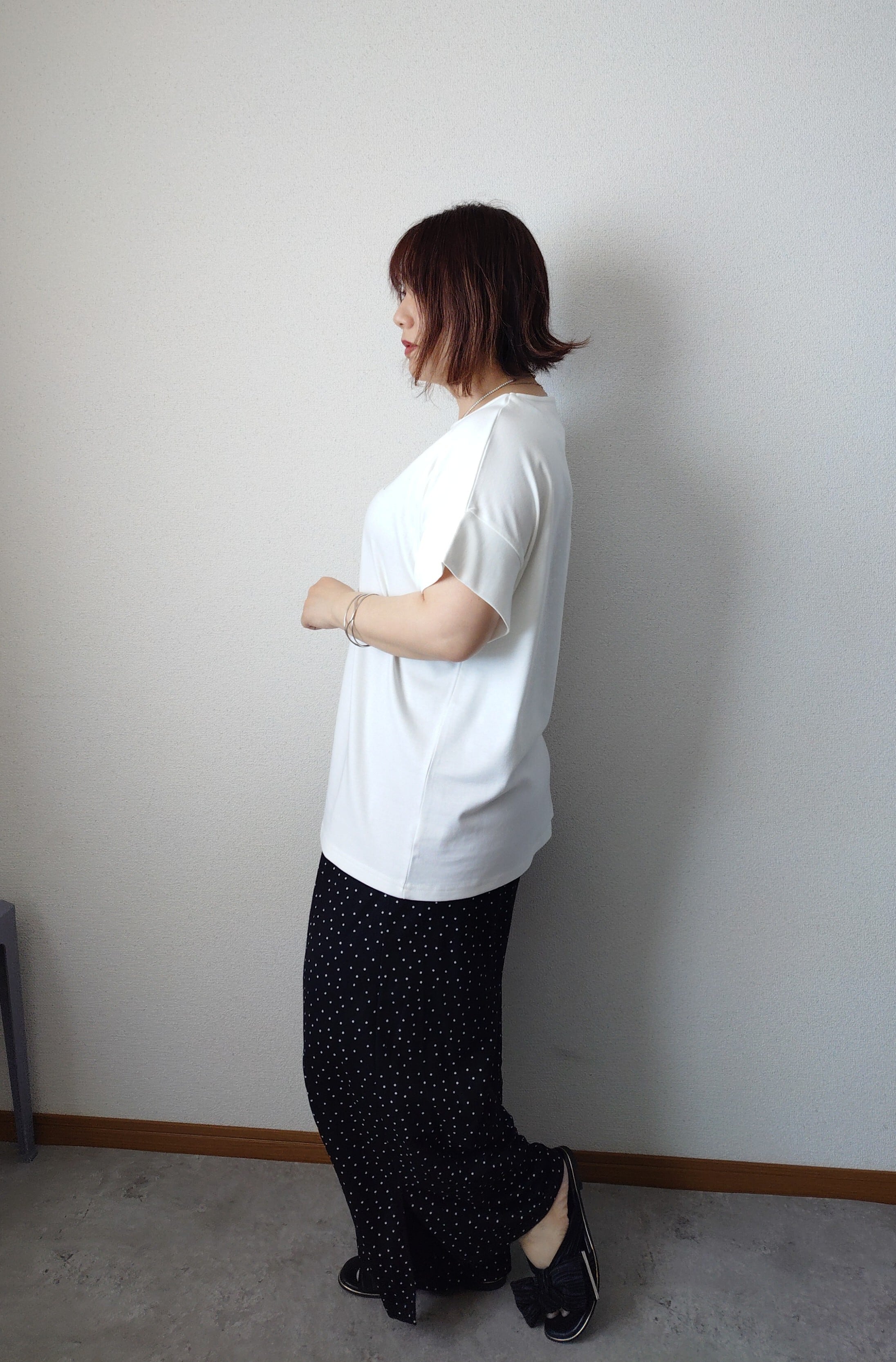 スラックスやスカートと合わせたきれいめコーデにも対応な万能Tシャツ★