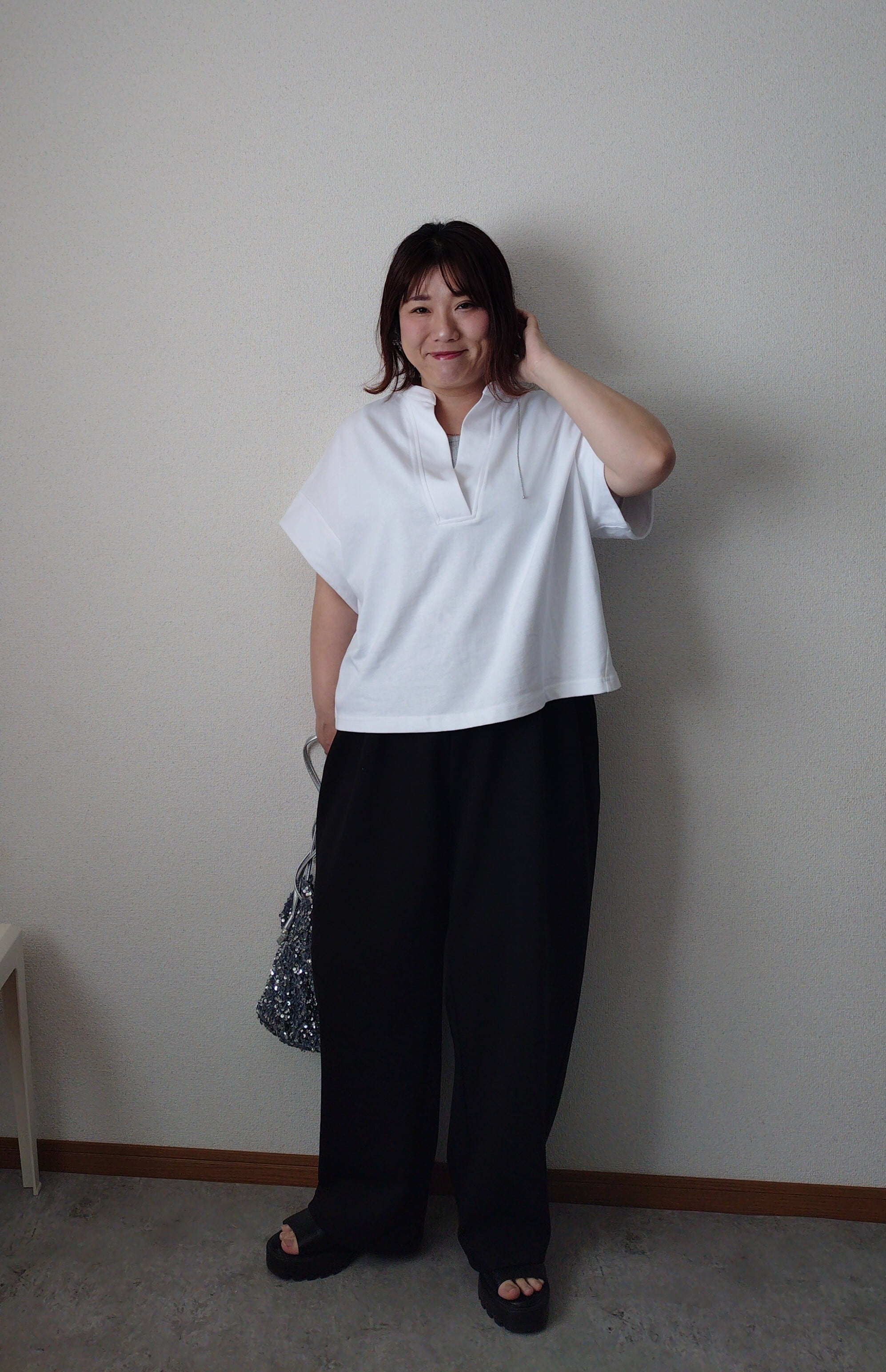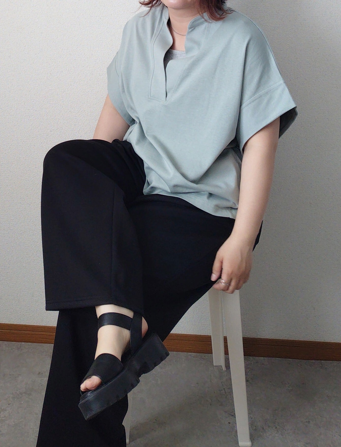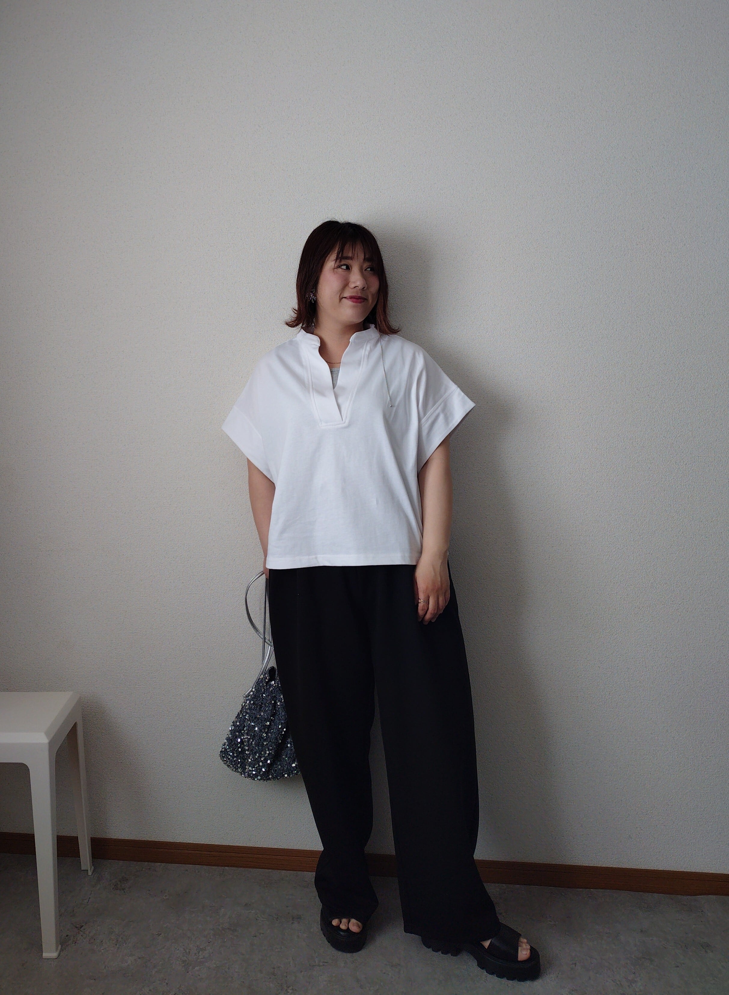 クビはガッツリあいてるので見せるインナーでアレンジしてください