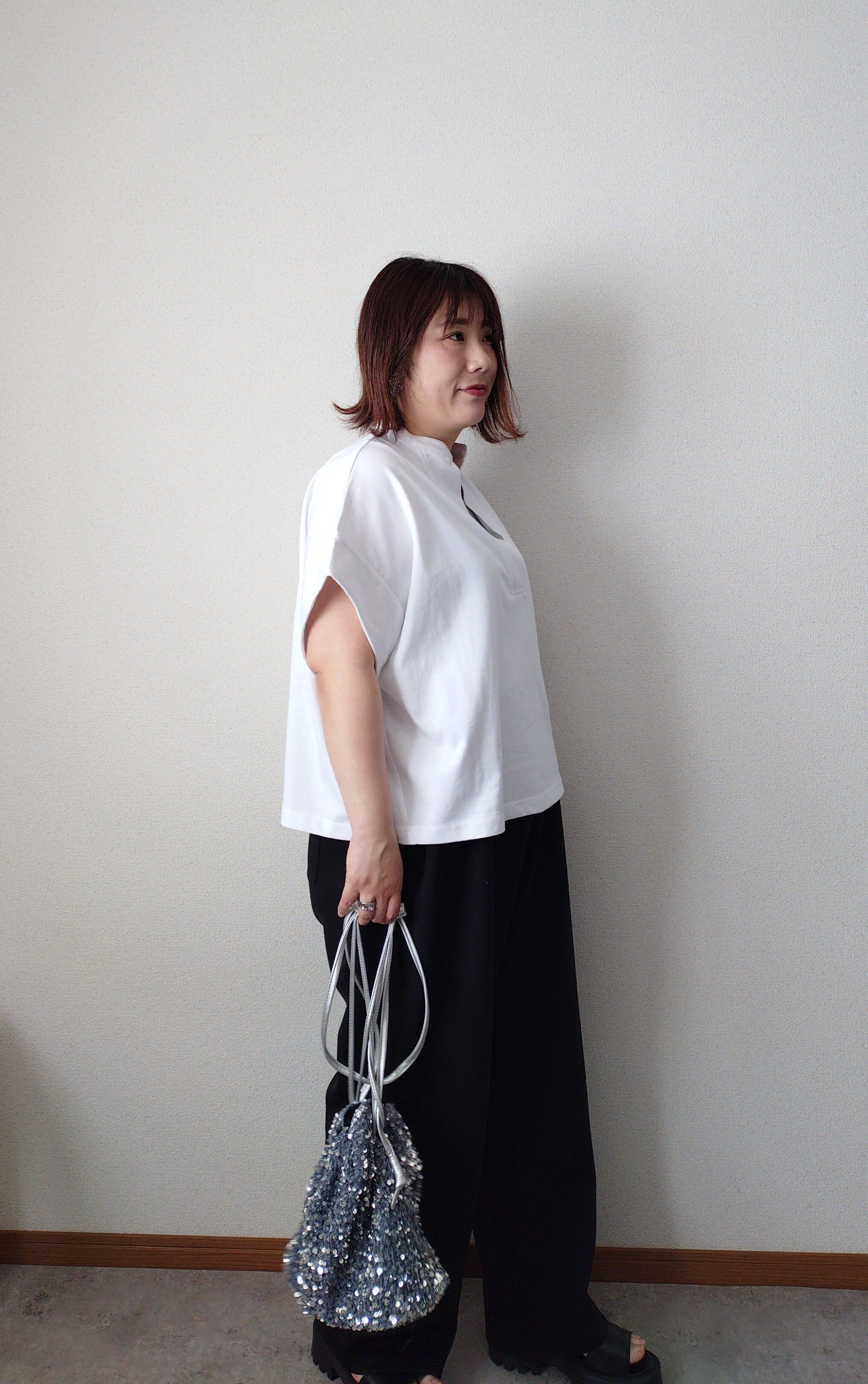 袖口広めなので、対比でうでがすっきりみえて嬉しい!