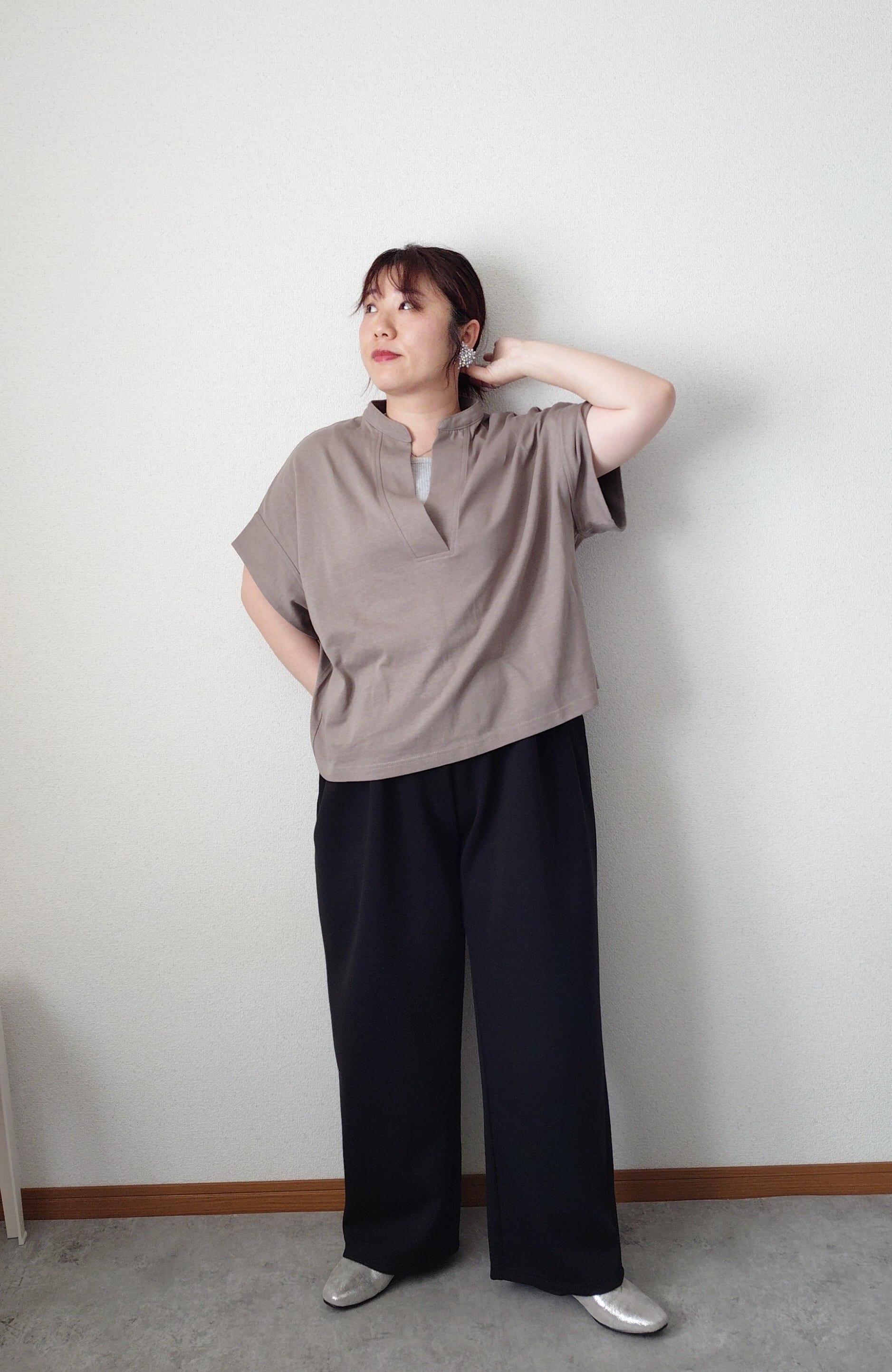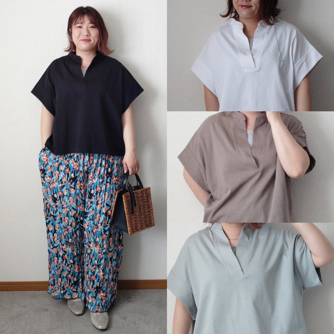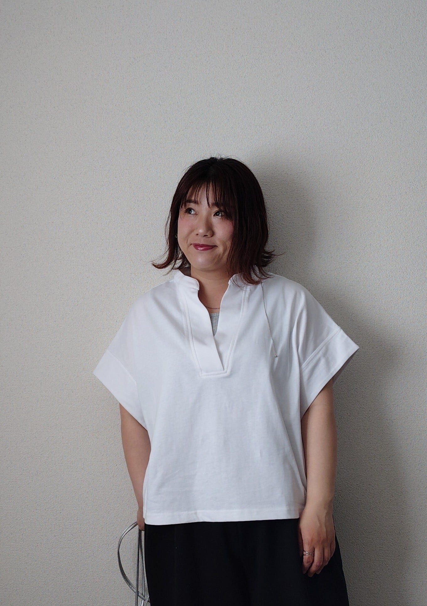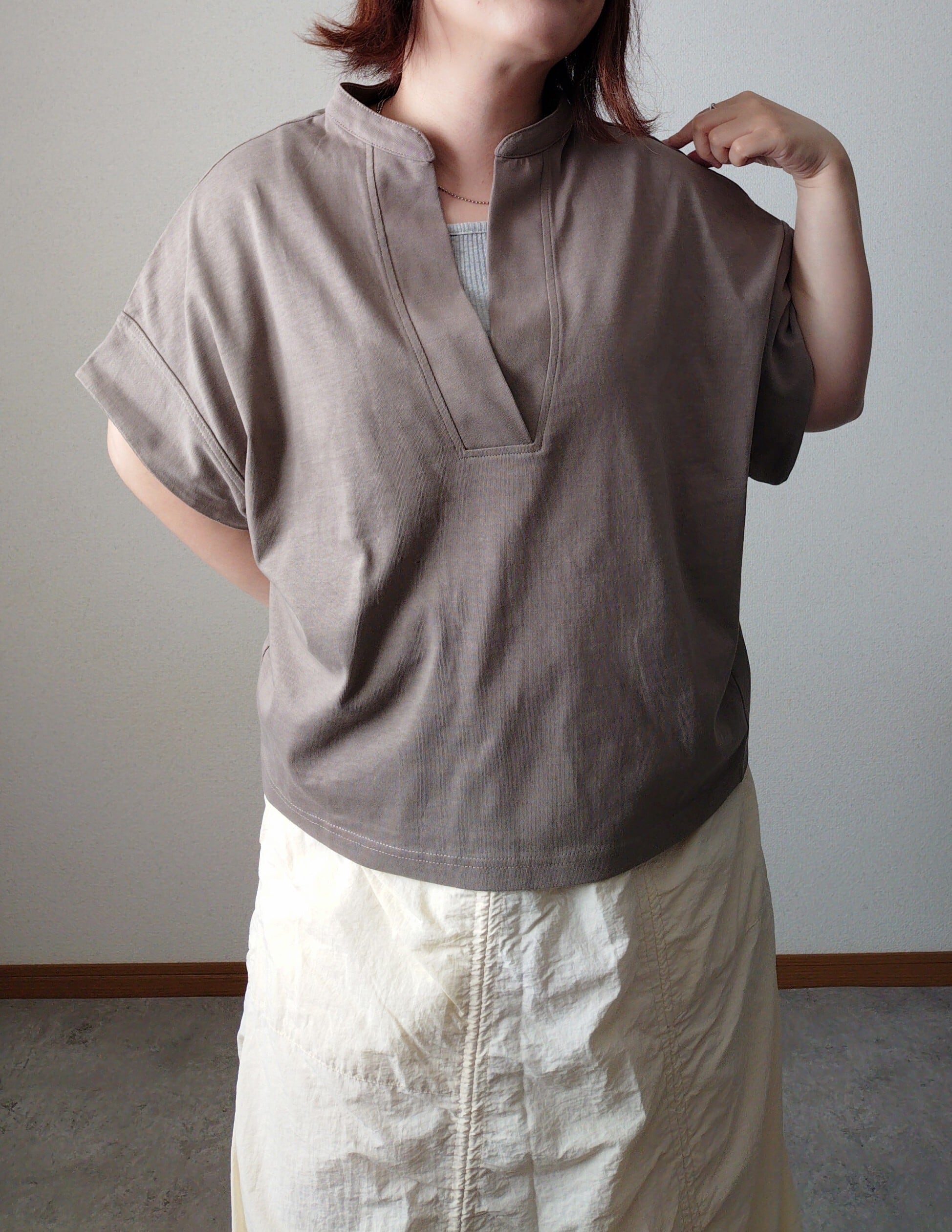 スキッパーでネックラインがすっきりとした、ゆったりめのプルオーバー。