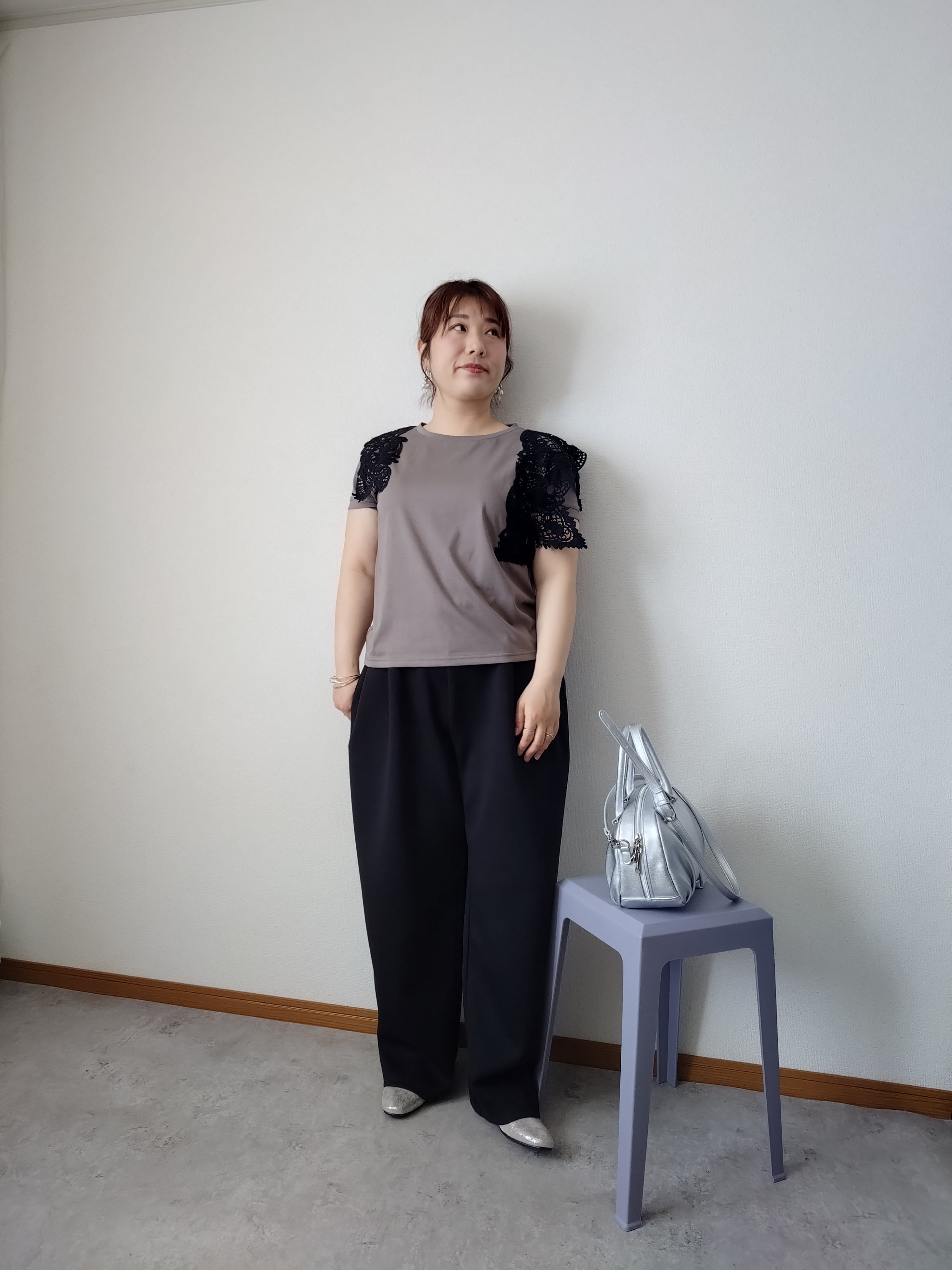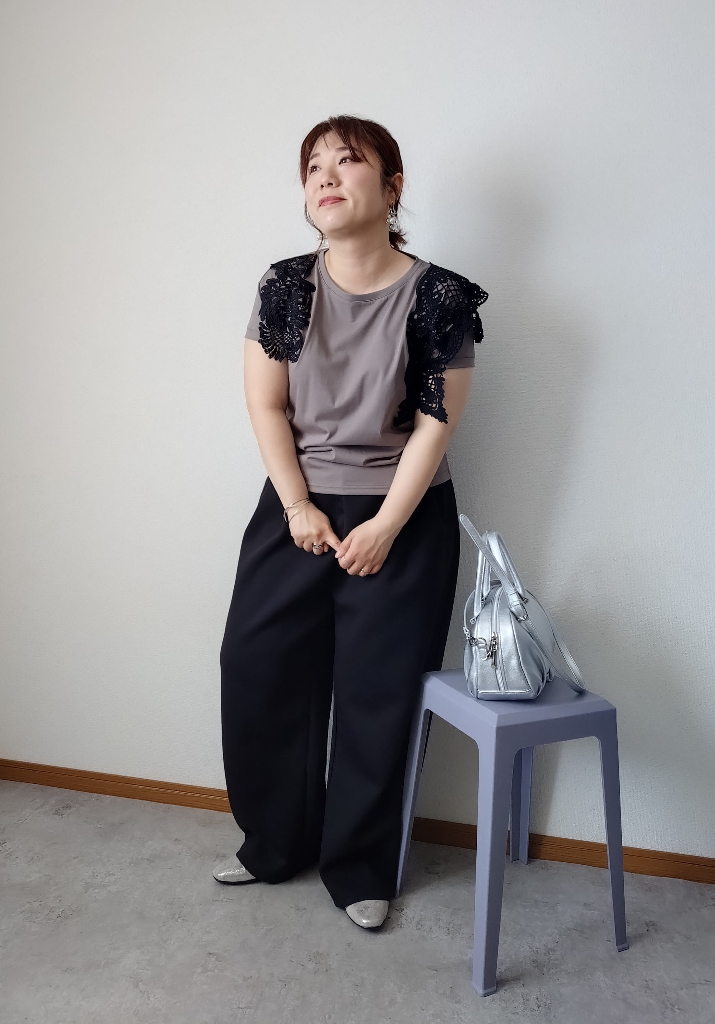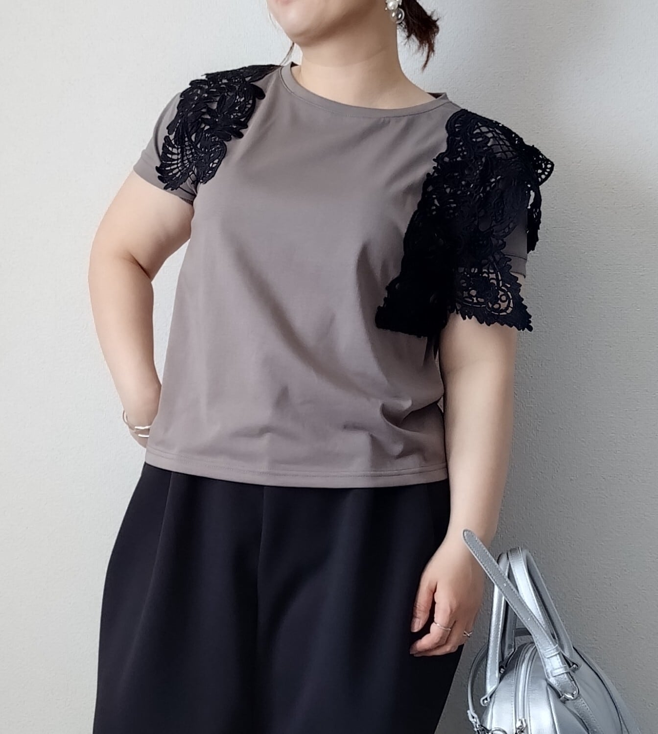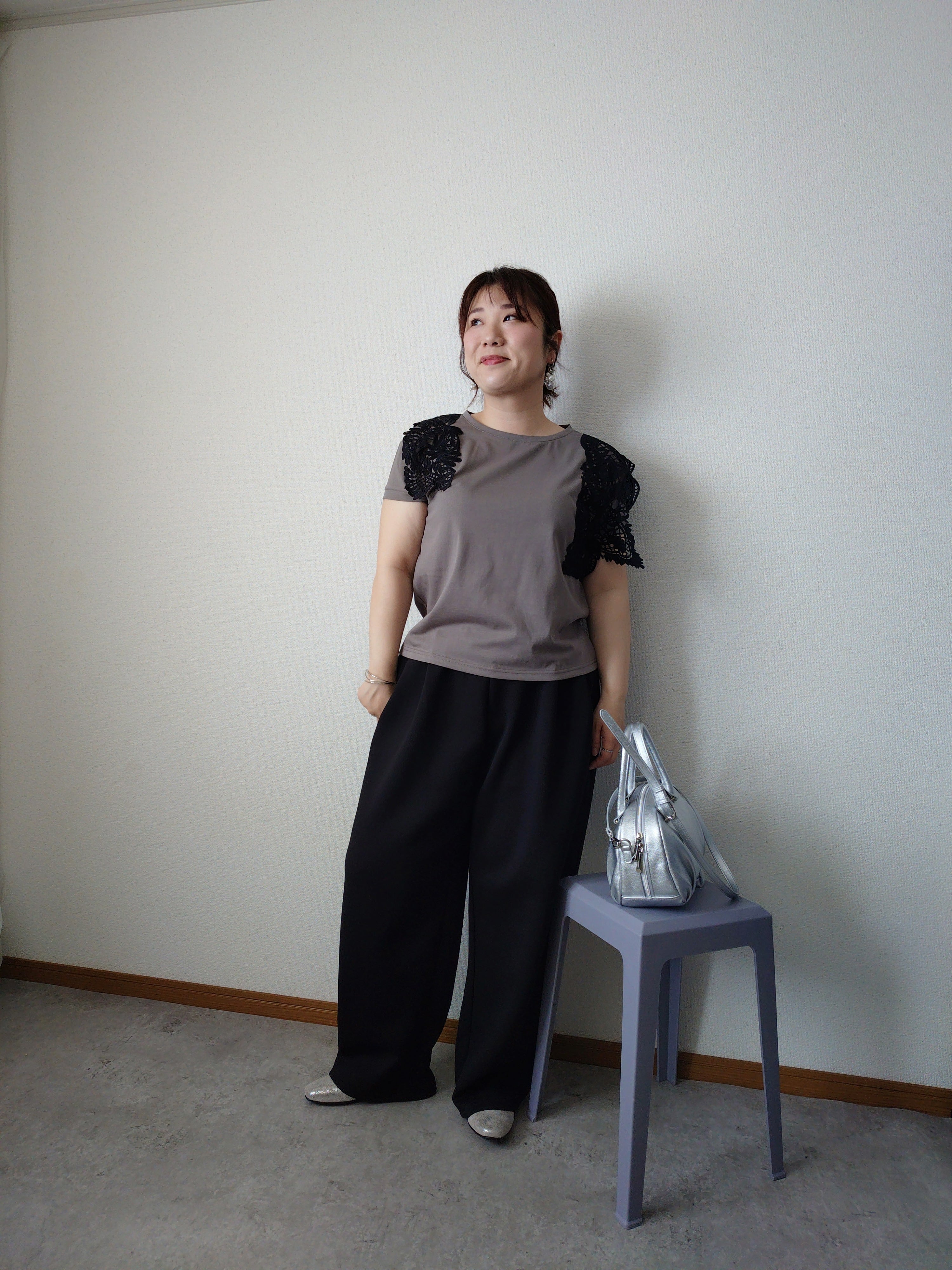 華やかさも落ち着いた印象も兼ね備えカットソーなので気軽に着れるのもうれしいポイント!