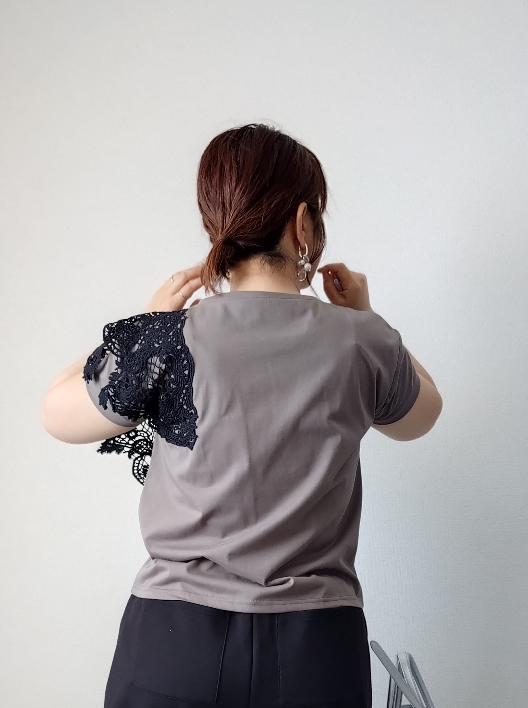 あえて両方ではなく、アシンメトリーにつけたレースが目を惹きます。