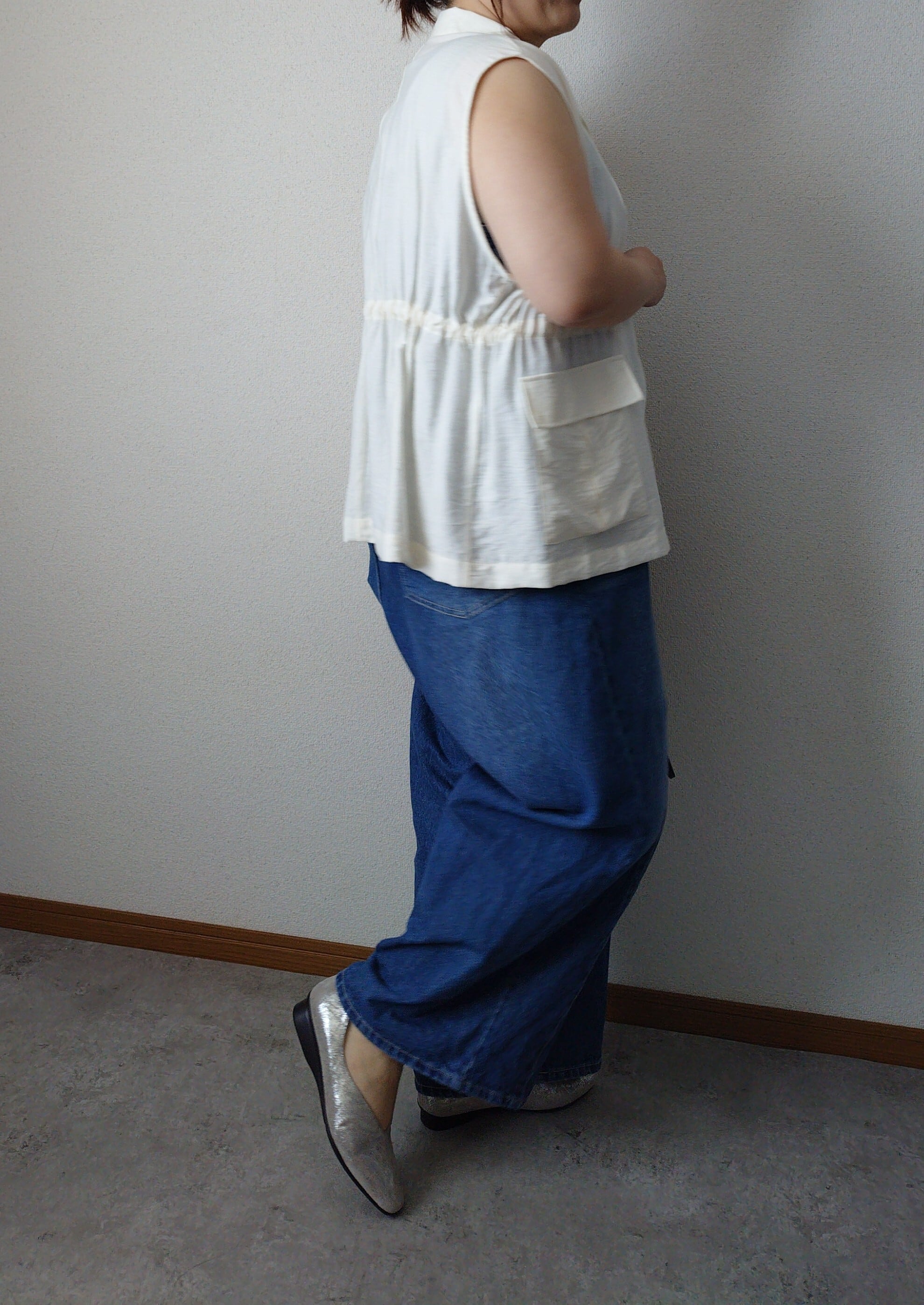 ロング丈を活かして、Iラインスカートを合わせて縦のラインを強調したすっきりとした着こなしも良さそう!腰のしぼりは、内側で調節できます。