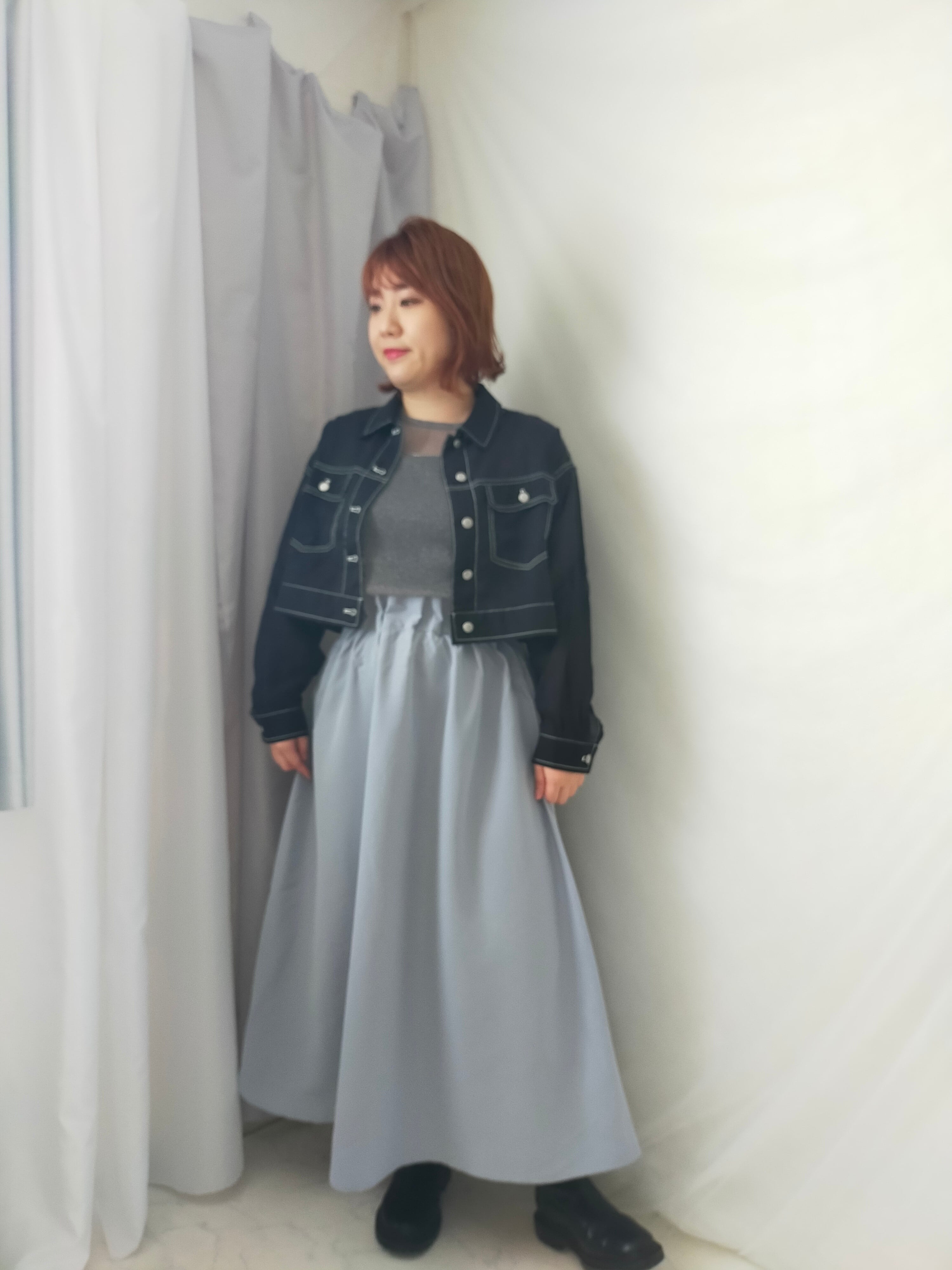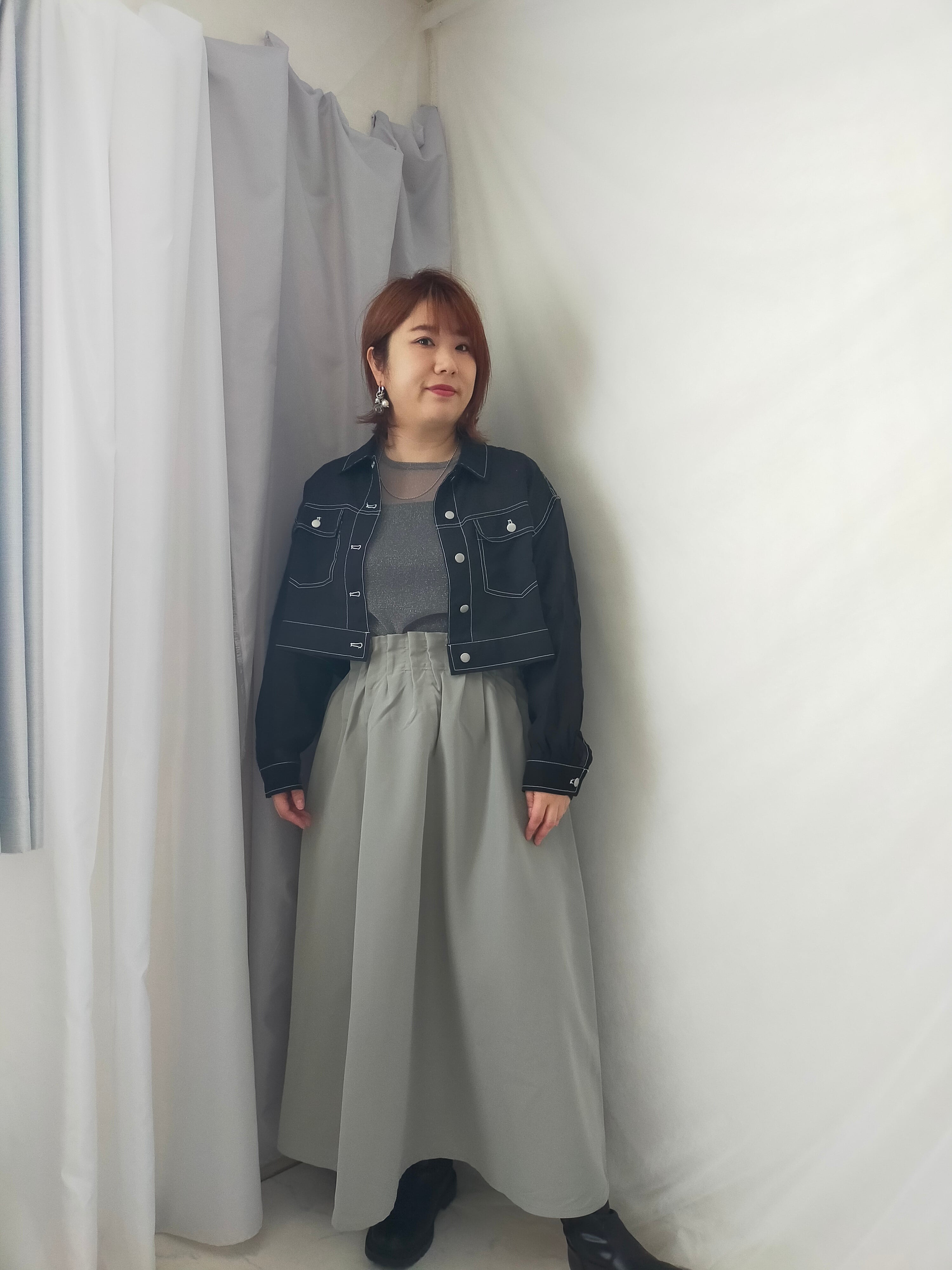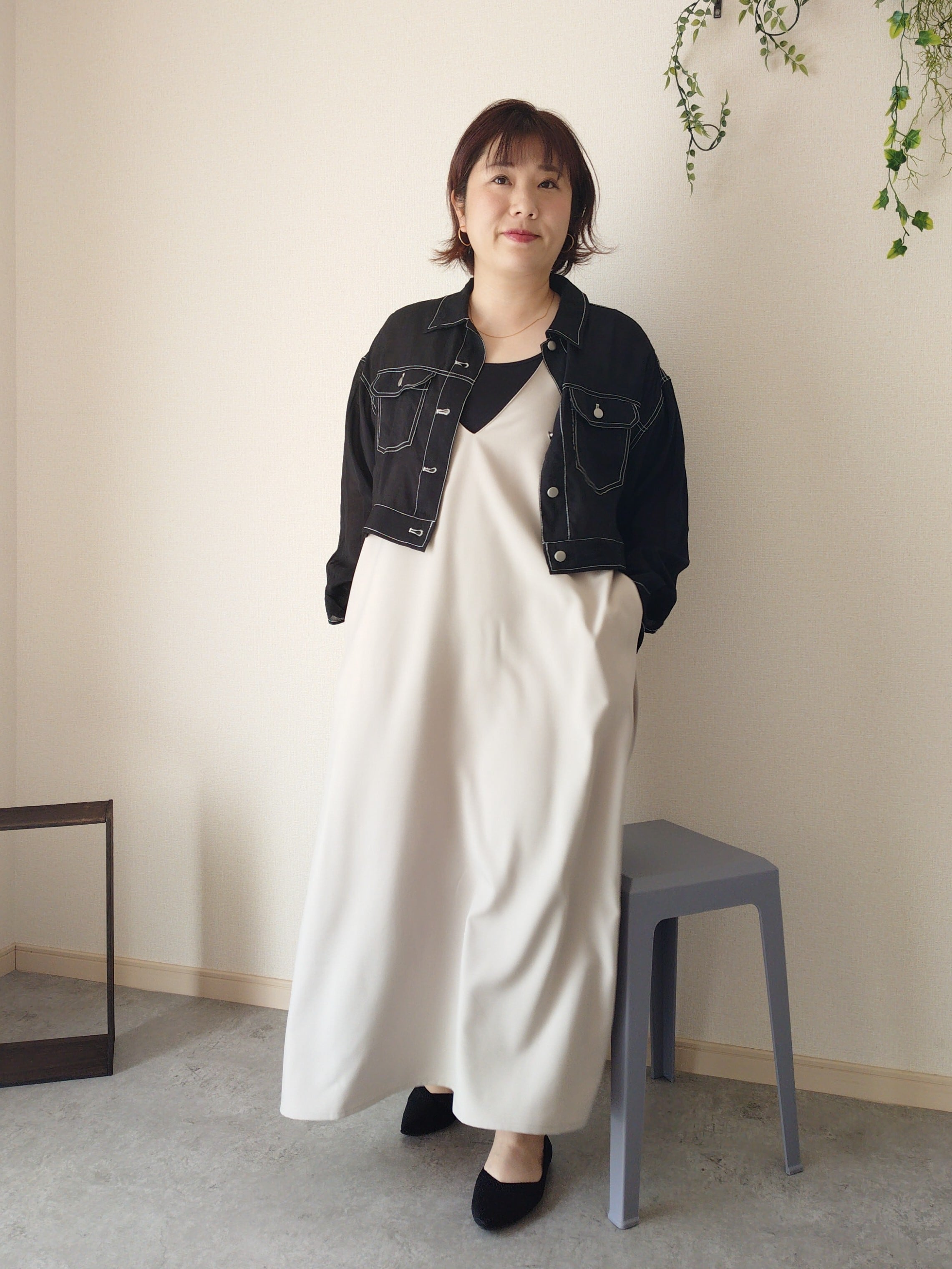 ロングスカートやワイドパンツ、ワンピが好きな方におすすめの1枚です。低身長さんにもよさそうです。
