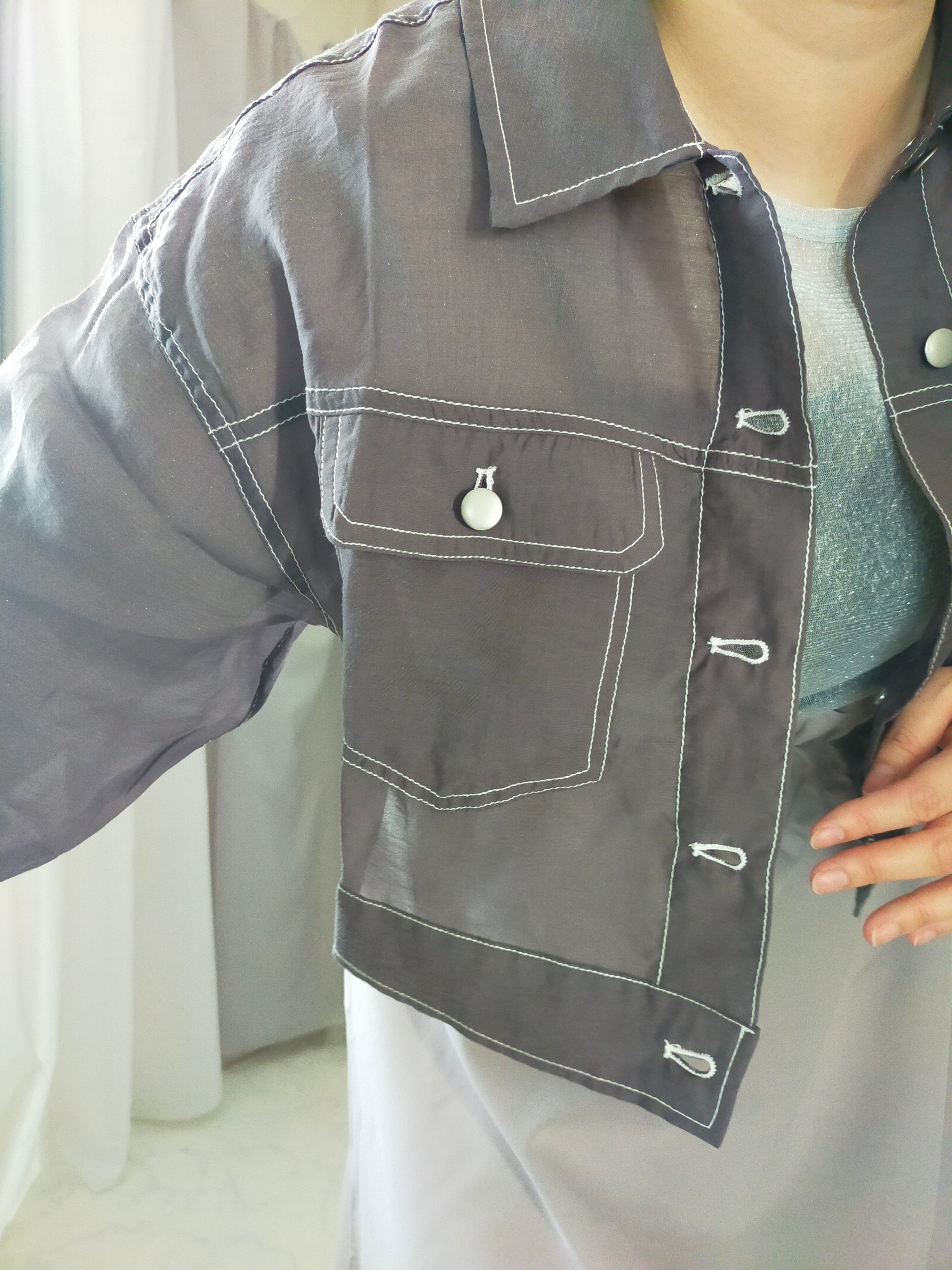薄いシャツ素材ですが、ジャケット見えするのでかっこいいです。